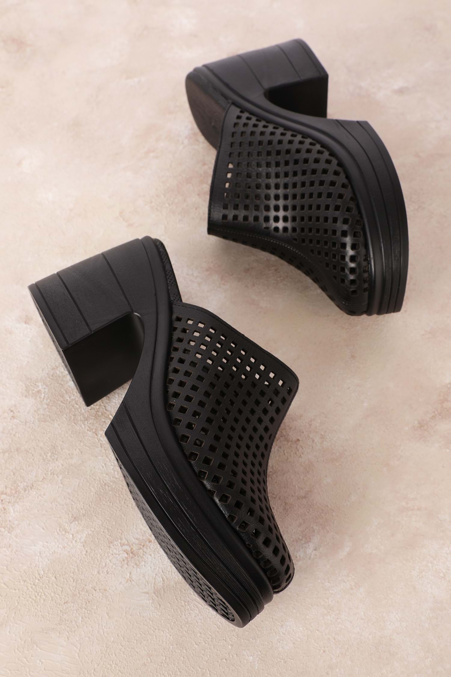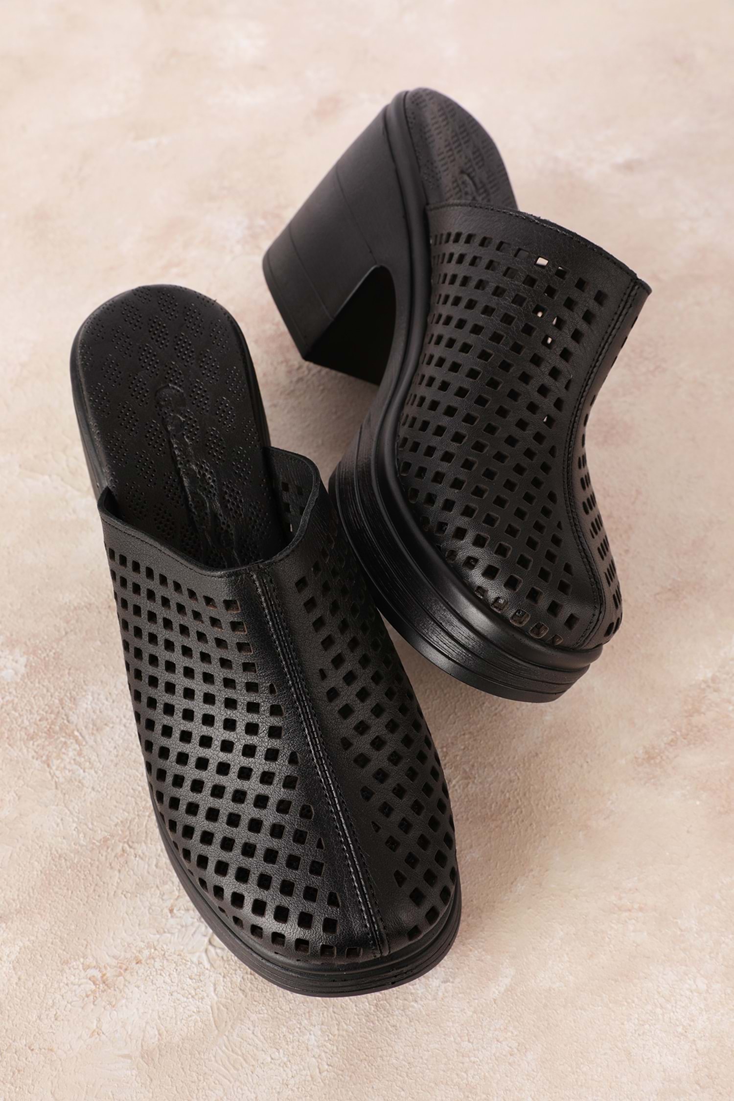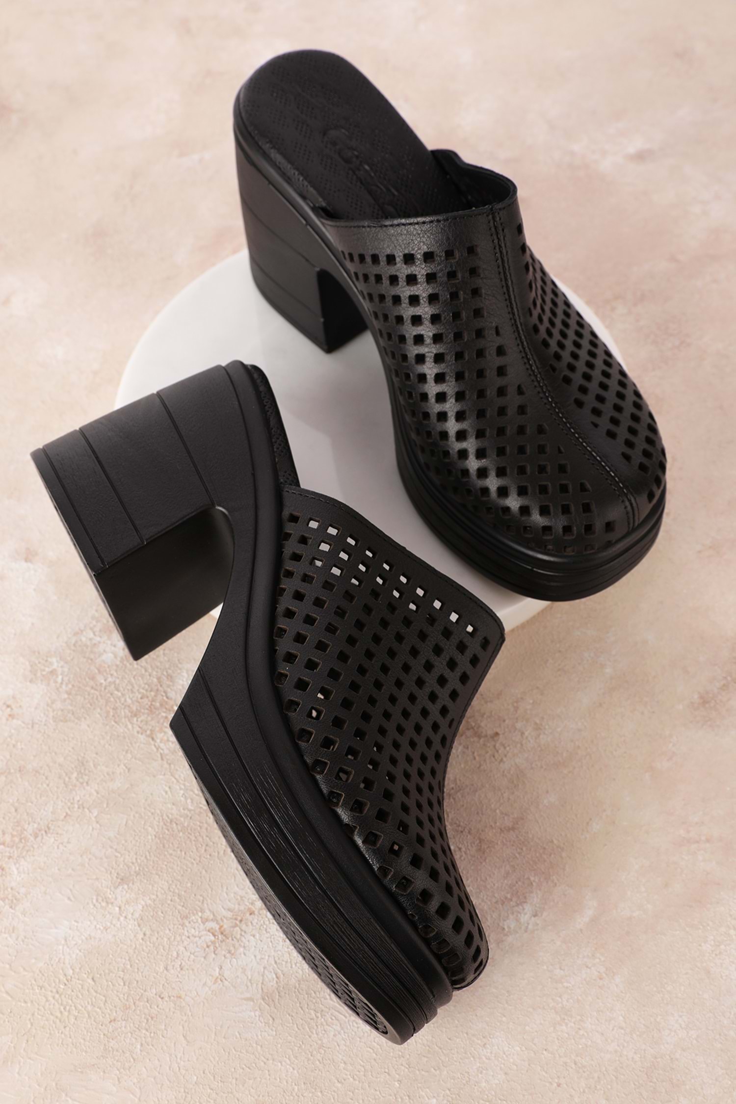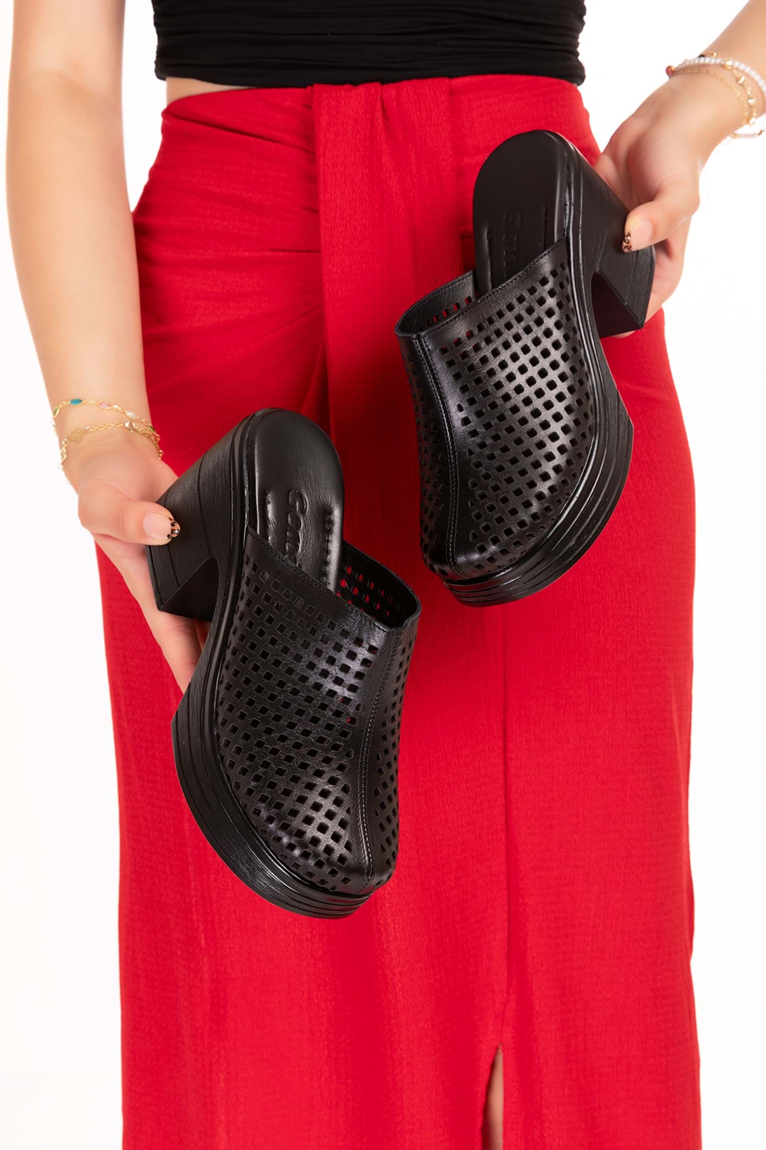* Hakiki Deri * Standart Kalıp * Topuk Boyu 9 cm * Platform 3 cm *Lazerli Şık Tasarım