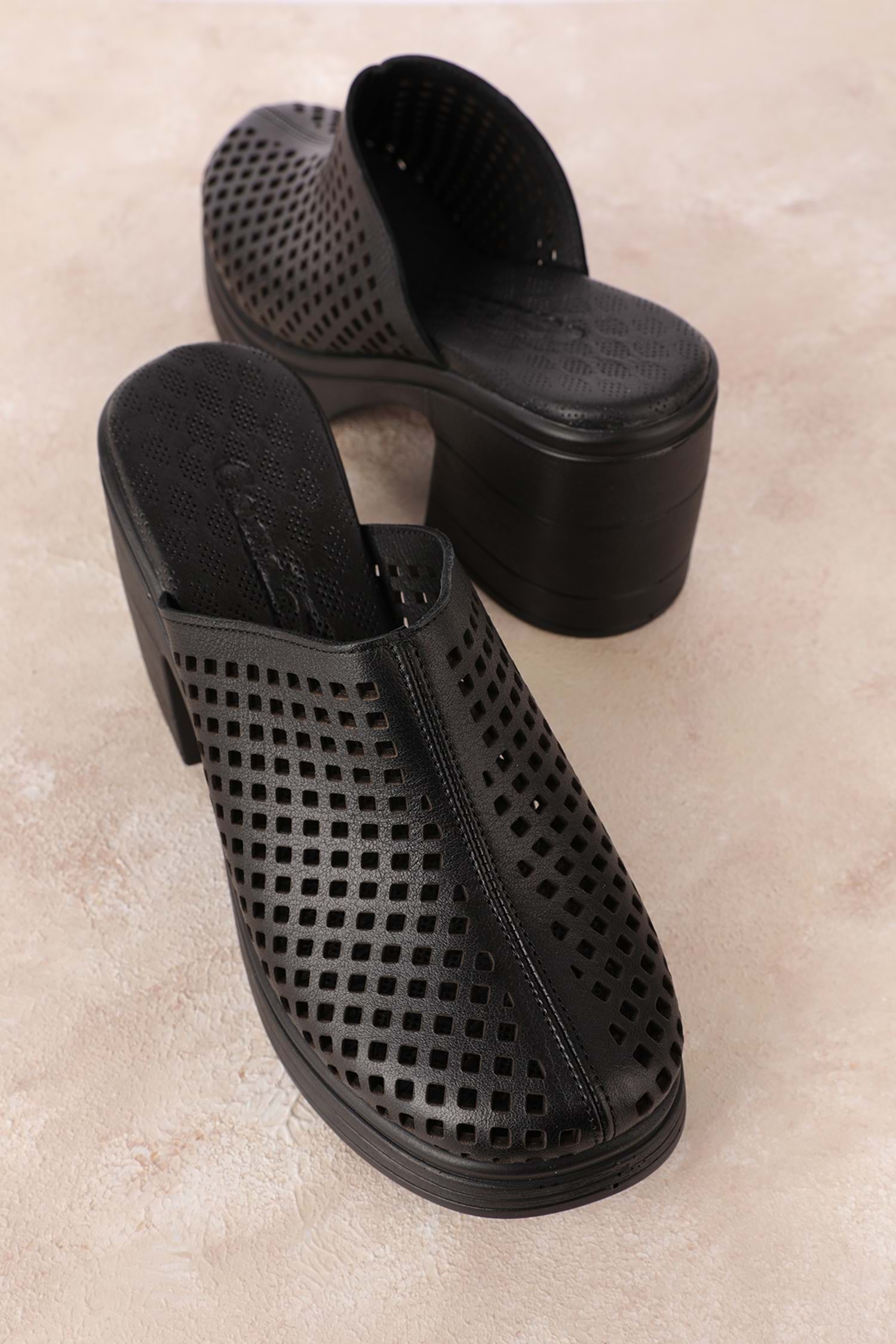 * Hakiki Deri * Standart Kalıp * Topuk Boyu 9 cm * Platform 3 cm *Lazerli Şık Tasarım