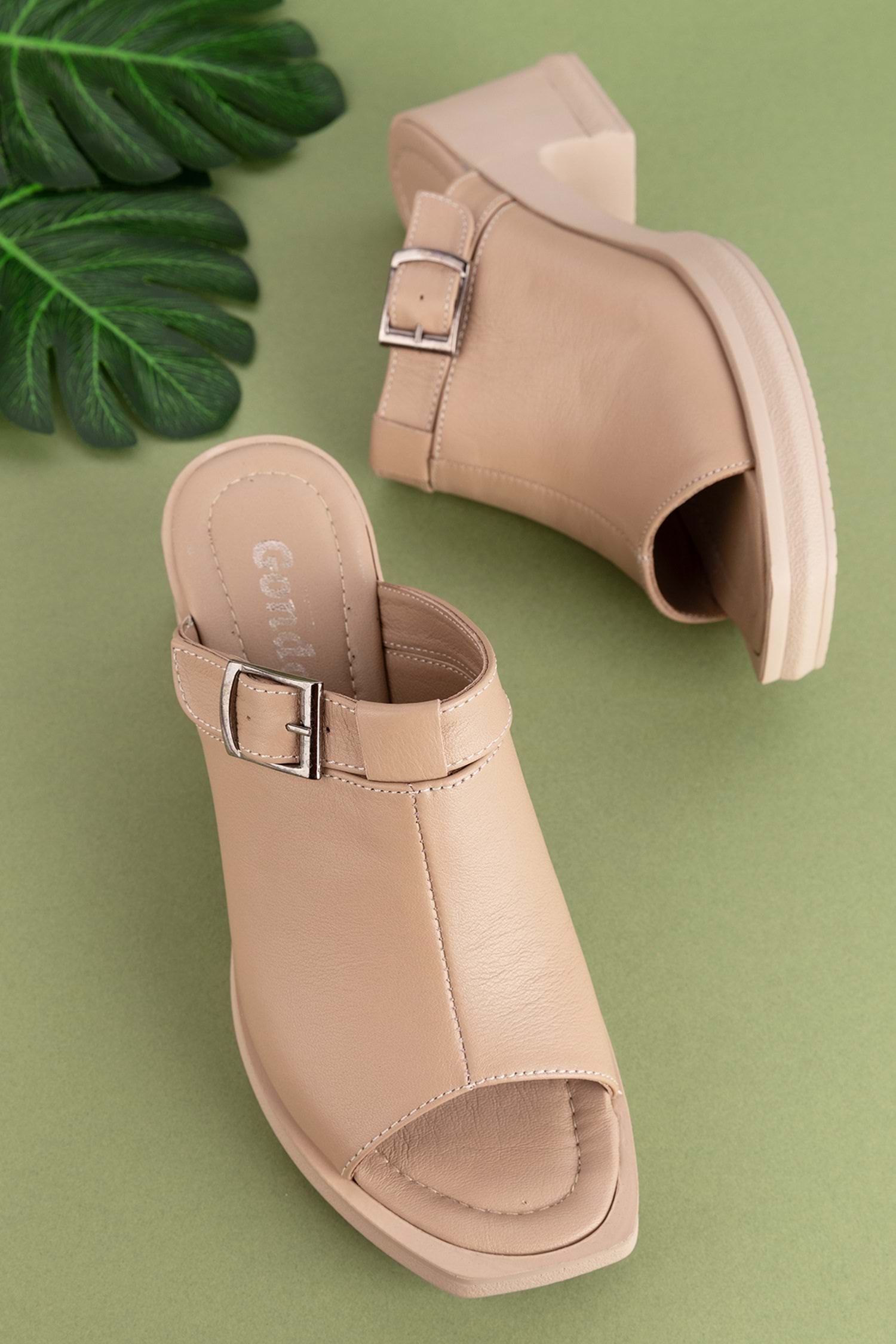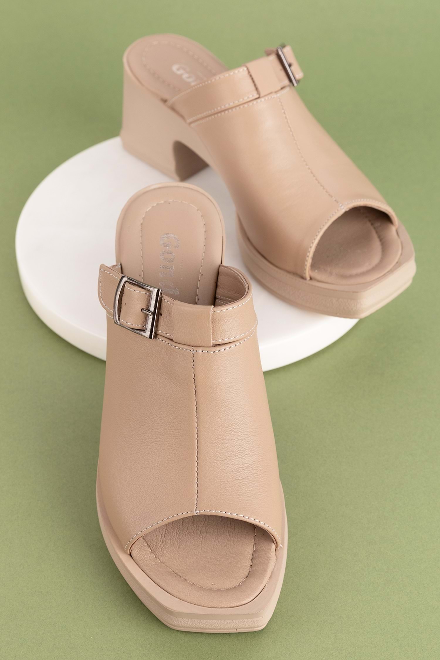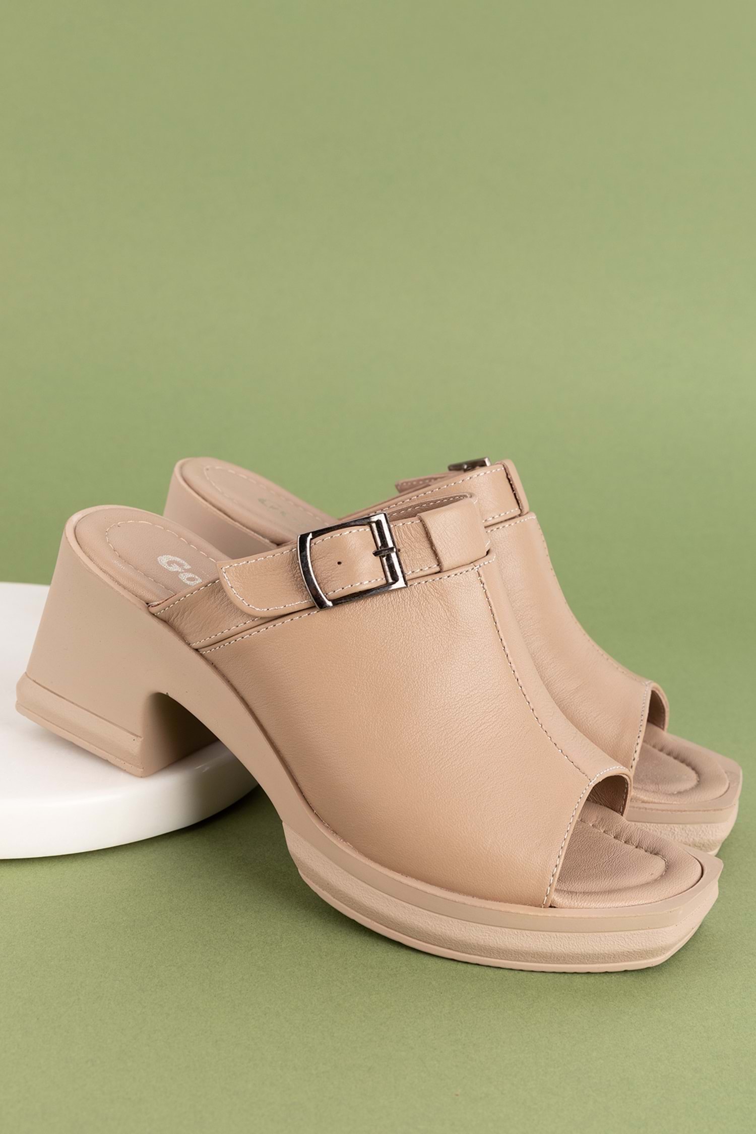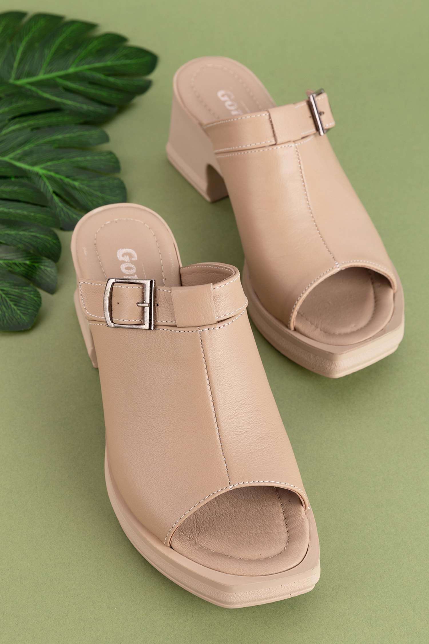 Gondol Kadın Hakiki Deri Şık Topuklu Terlik ez.5003 - Vizon - 38