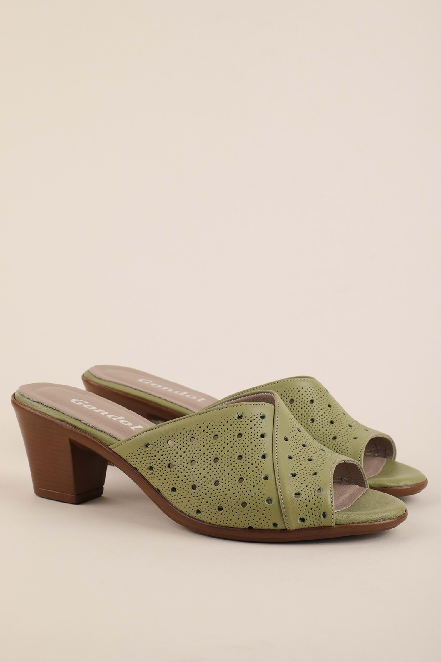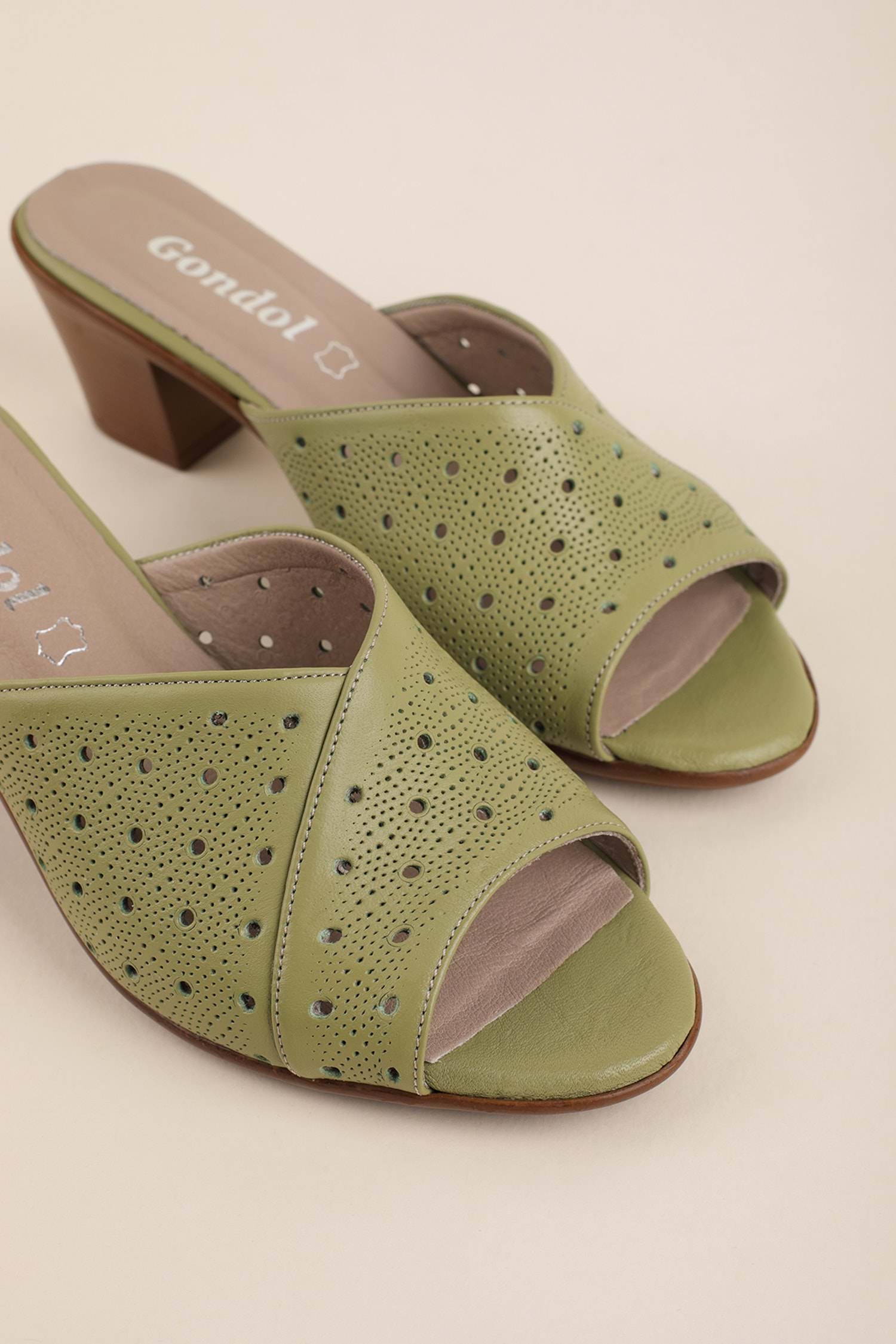 Gondol Kadın Hakiki Deri Topuklu Terlik vdt.222 - Haki - 42