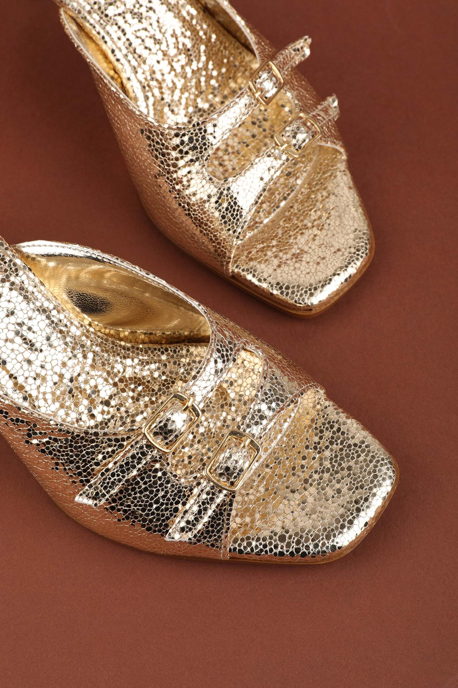 Gondol Kadın İnce Topuklu Zarif Çift Tokalı Abiye Terlik mad.2026 - Dore - 36