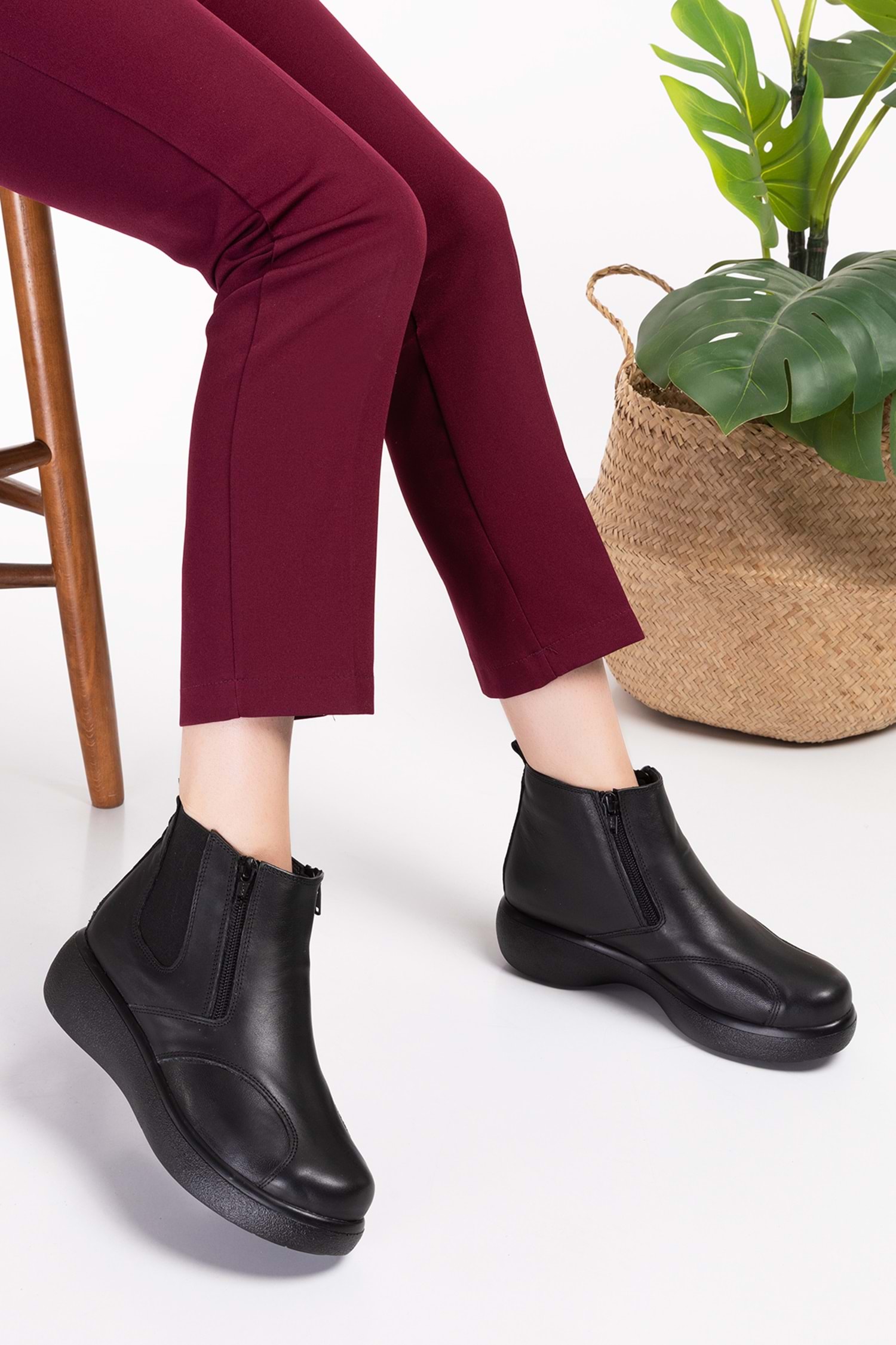 Gondol Hakiki Deri Anatomik Taban Kemik Çıkıntısına Özel Bot Siyah 38 elnr.5107