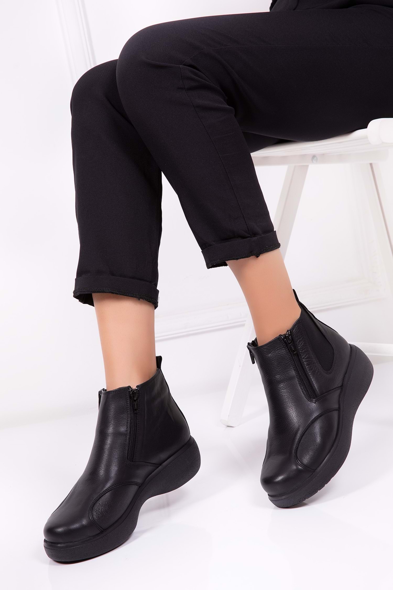 * %100 Hakiki Deri *Çift Fermuarlı Kolay Giyim * Uzun Süre Yürüyen, Ayakta Duran Ve Ayak Ağrısı Çekenlere Özel * Ekstra Yumuşak Taban Desteği * Kemik Çıkıntısına (Halluks Valgus) Uygun Esnek Yan Deri * Taban Çökmesine (içe basma) Uygun Yüksek Ark Desteği * Ayağı Her Açıdan Saran Saya, Taban Ve İç Taban Sayesinde Teşvik Edici Yürüyüş Kolaylığı Sağlamaktadır * Anti Şok Tabanlı, Uzun Ömürlü, Ayakları Yormayan Tasarım * Topuk Dikeni İçin Uygun Tasarım