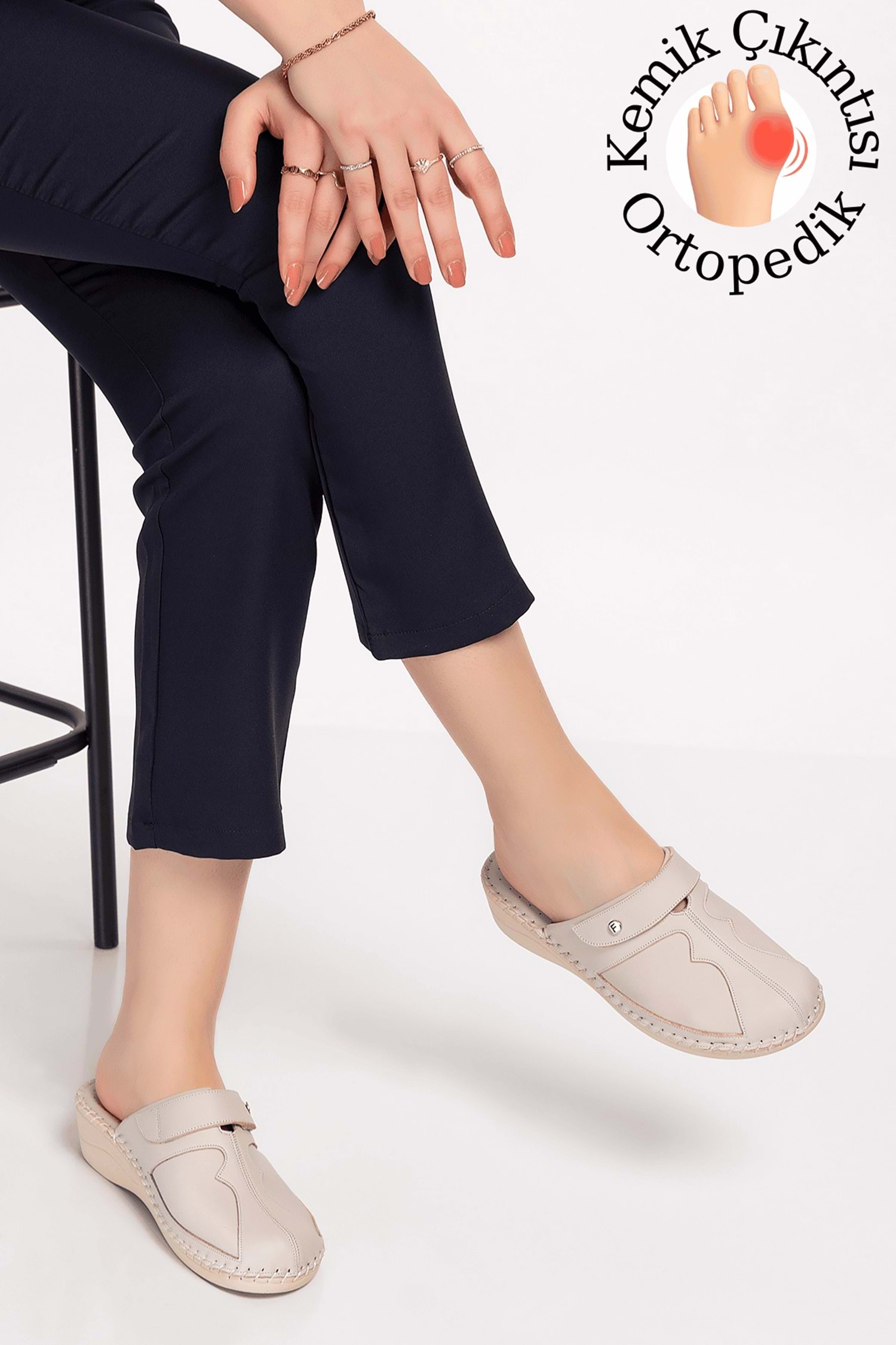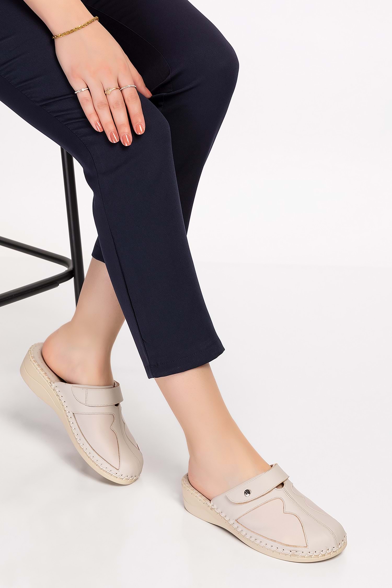 Gondol Hakiki Deri Kemik Çıkıntısına Özel Terlik-yprk.511 - Bej - 36