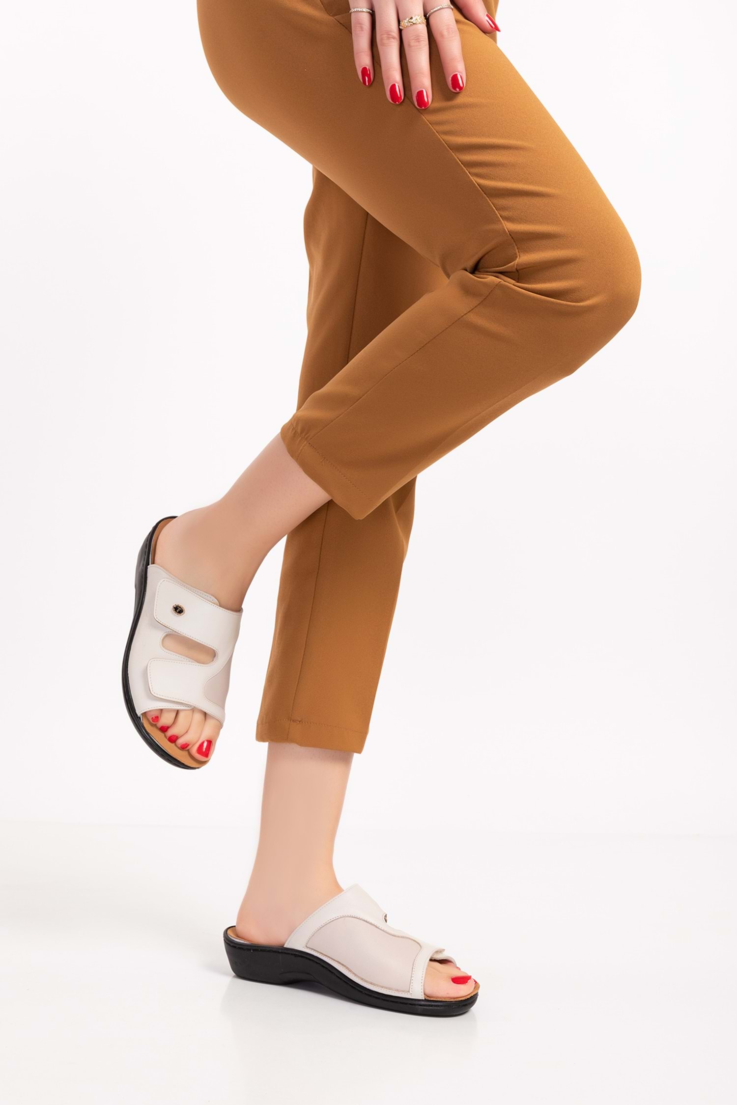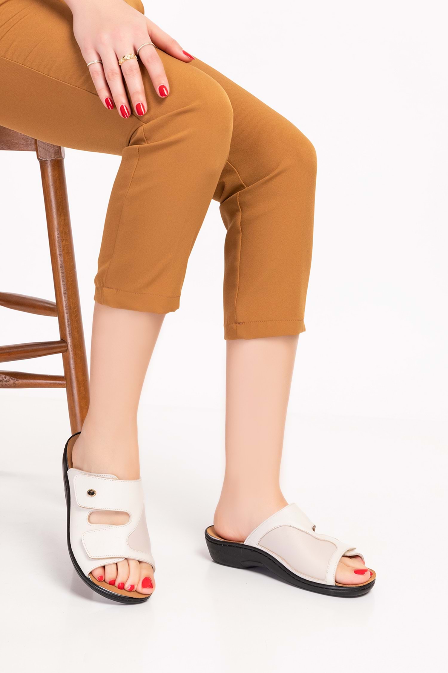 Gondol Kadın Hakiki Deri Kemik Çıkıntısına Özel Tabanı Çıkan Terlik Yprk.250 - Bej - 36