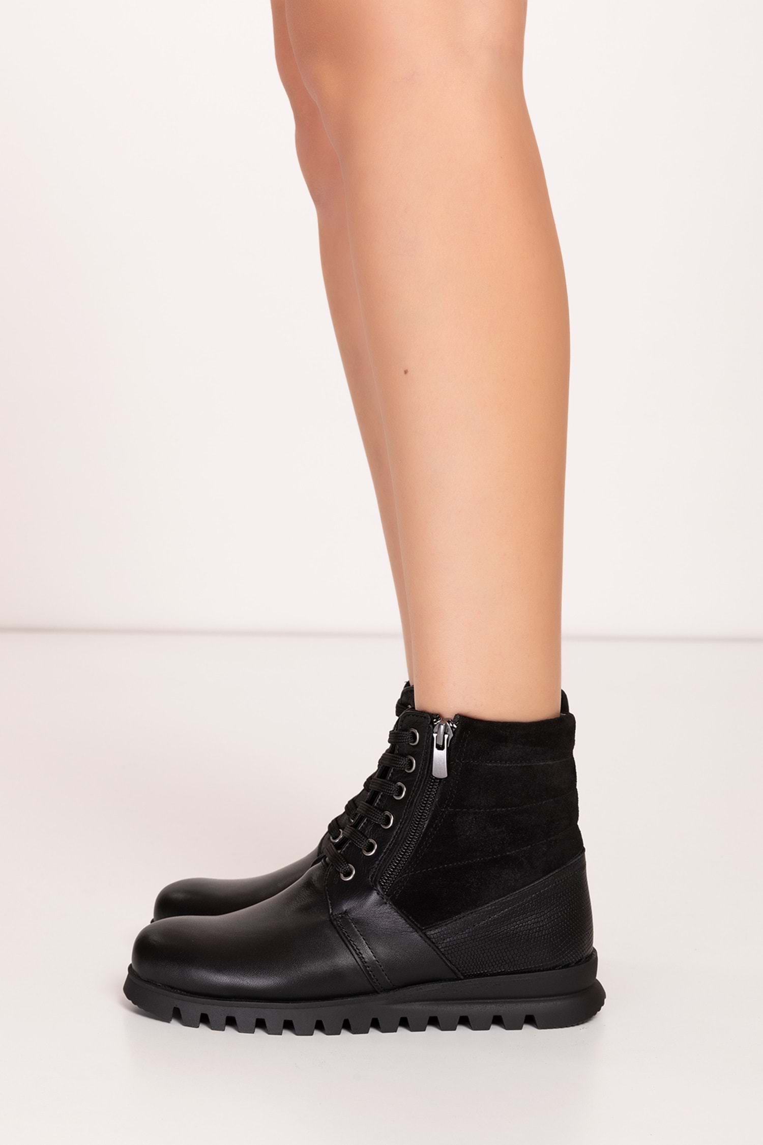 Hakiki Deri Topuk 4 cm Kaymaz Taban Standart Kalıp Fermuarlı Kolay Giyim