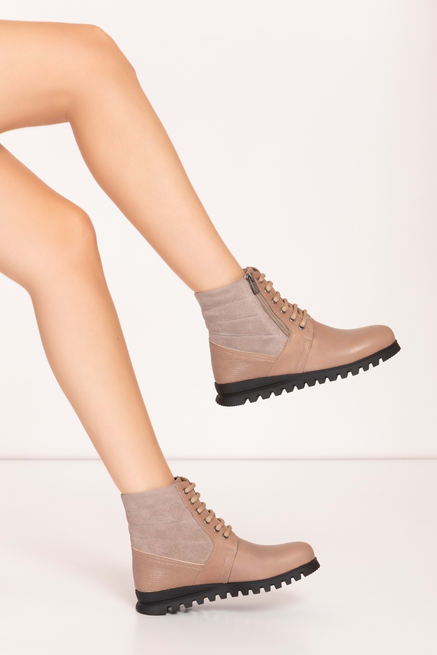 Hakiki Deri Topuk 4 cm Kaymaz Taban Standart Kalıp Fermuarlı Kolay Giyim