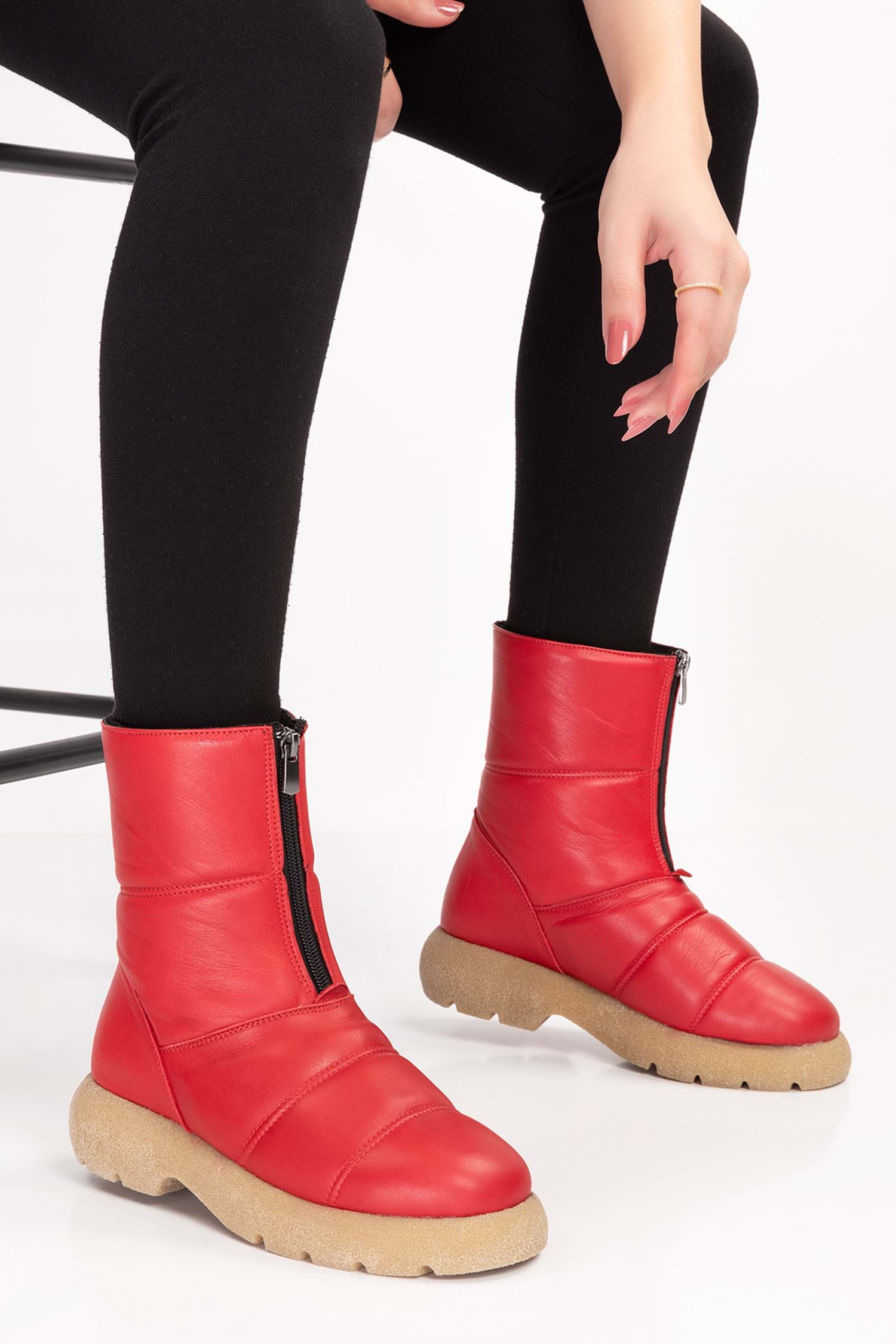 Gondol Hakiki Deri Günlük Şık Kaymaz Taban Bot tre.5070 - kırmızı - 37