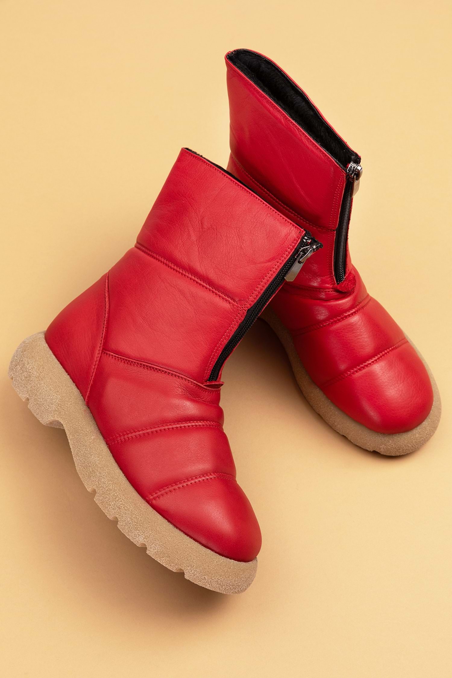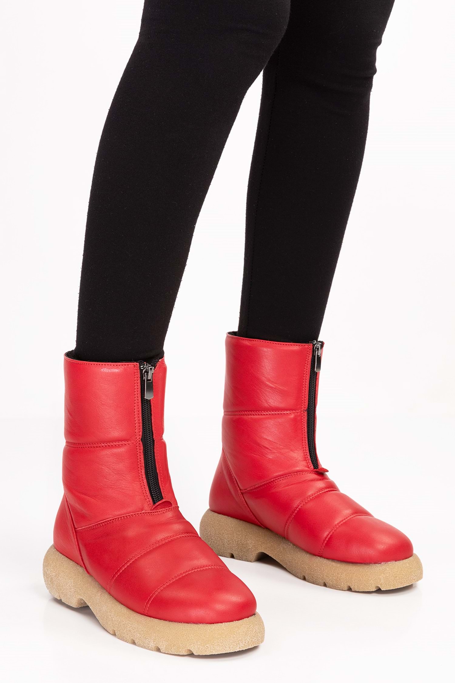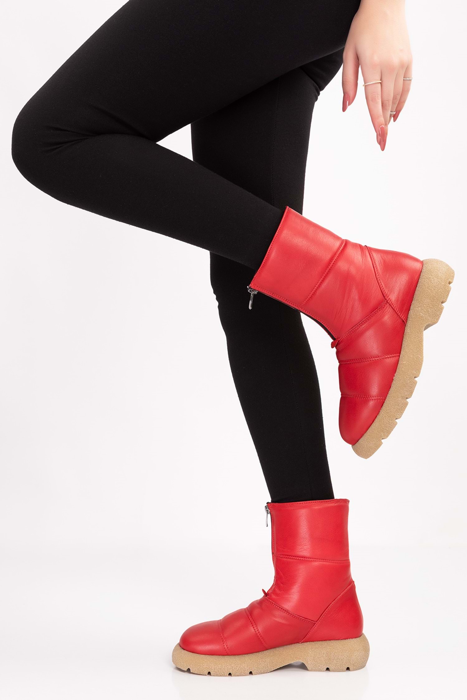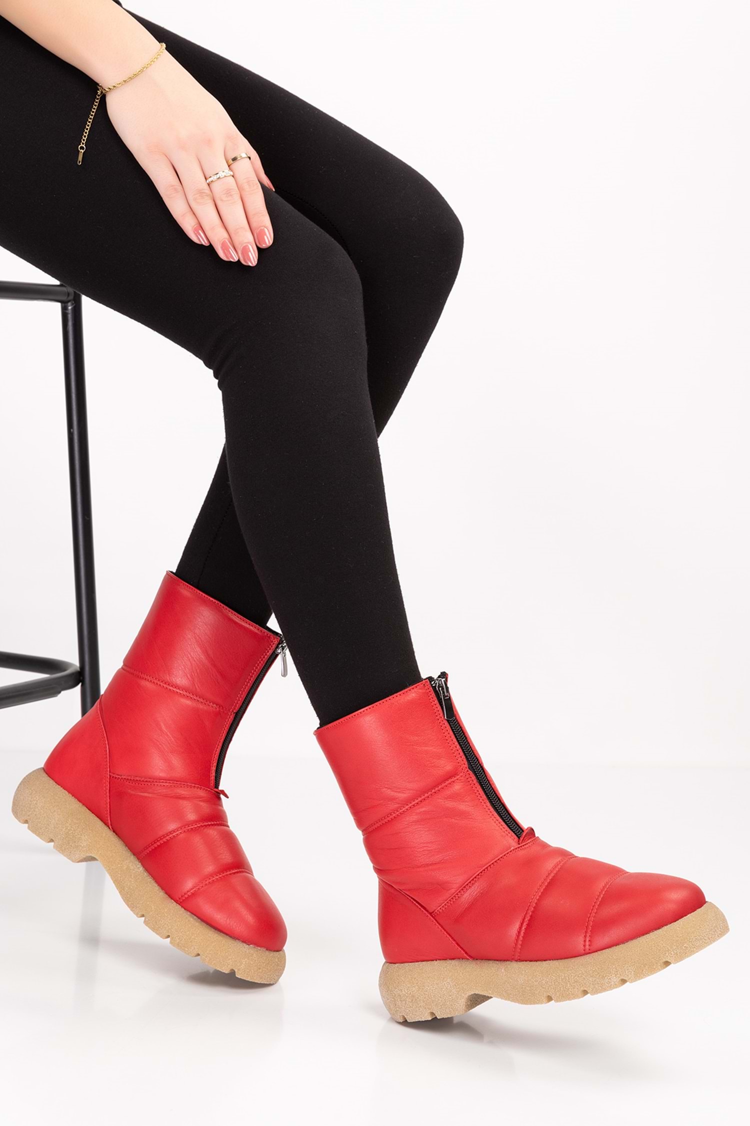 Hakiki Deri Topuk 4 cm Kaymaz Taban Standart Kalıp Fermuarlı Kolay Giyim
