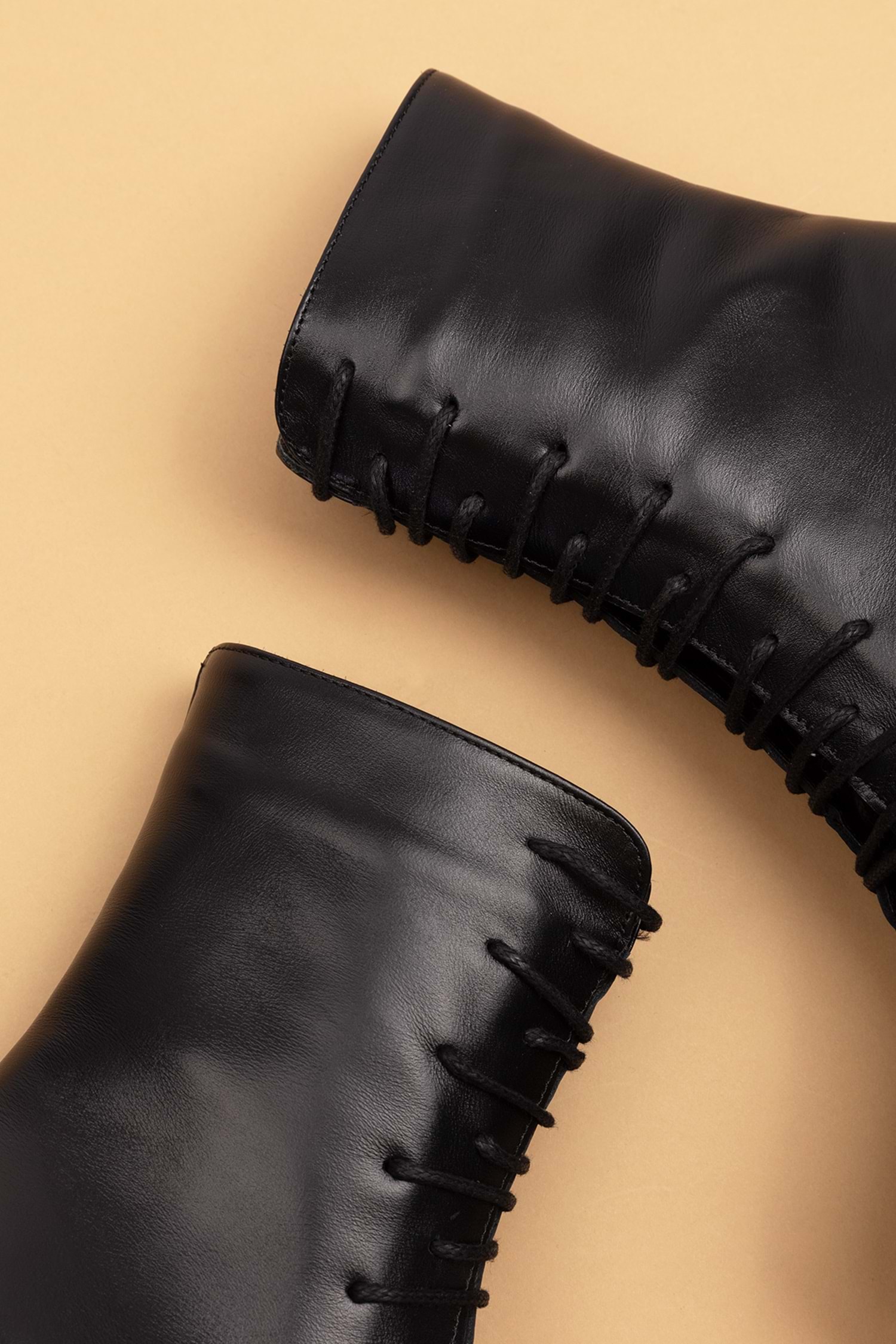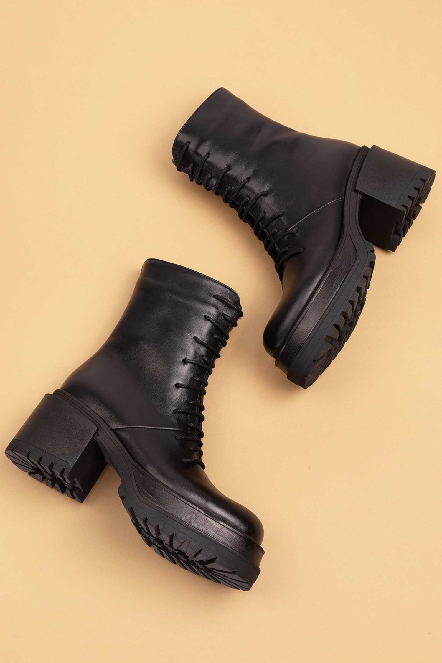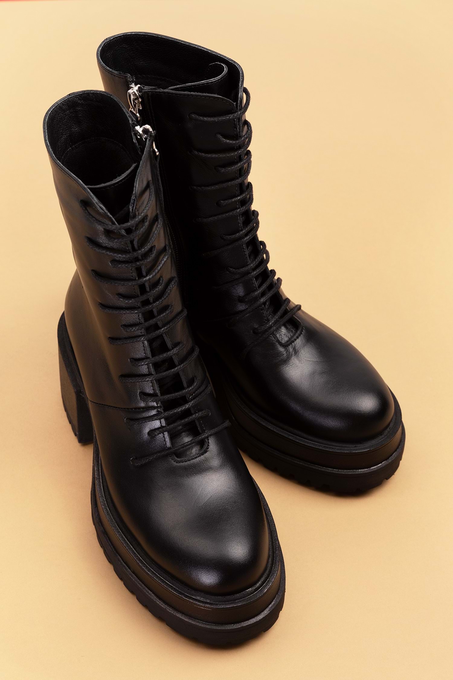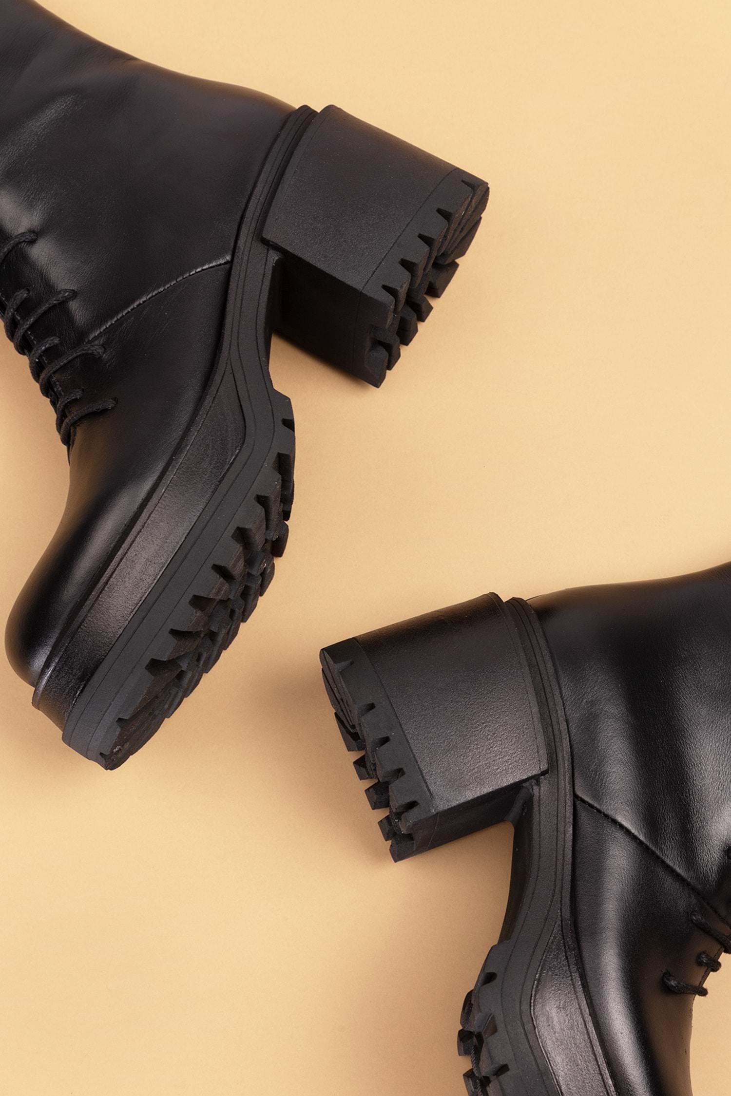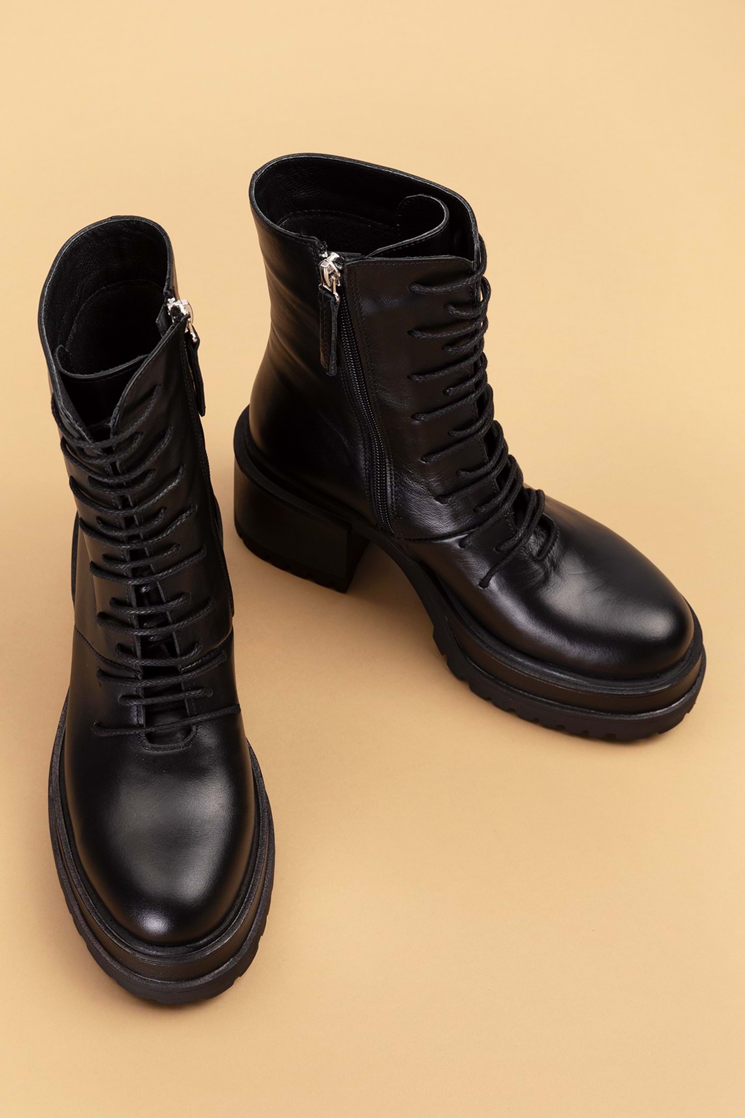 Gondol Kadın Hakiki Deri Kalın Topuklu Bağcıklı Fermuarlı Bot rg.88191 - Siyah - 40