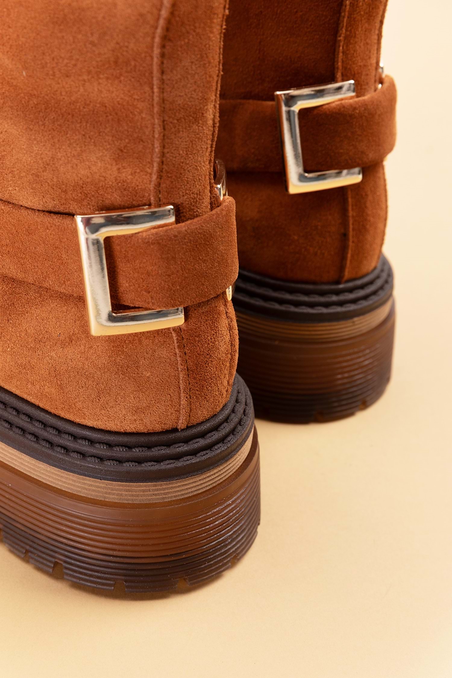 Gondol Kadın Hakiki Deri Kauçuk Taban Şık Bot rg.66130 - Taba Süet - 40