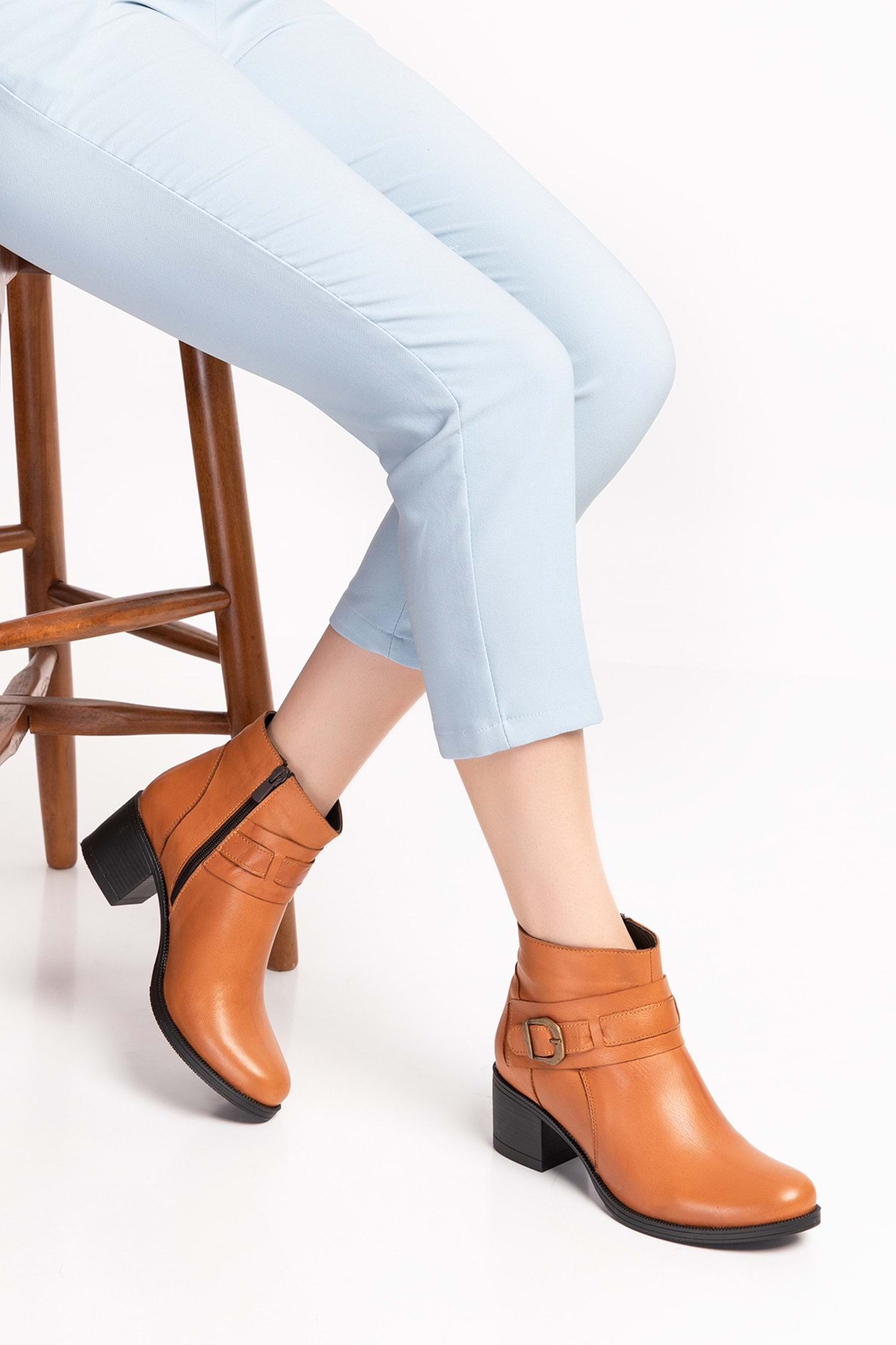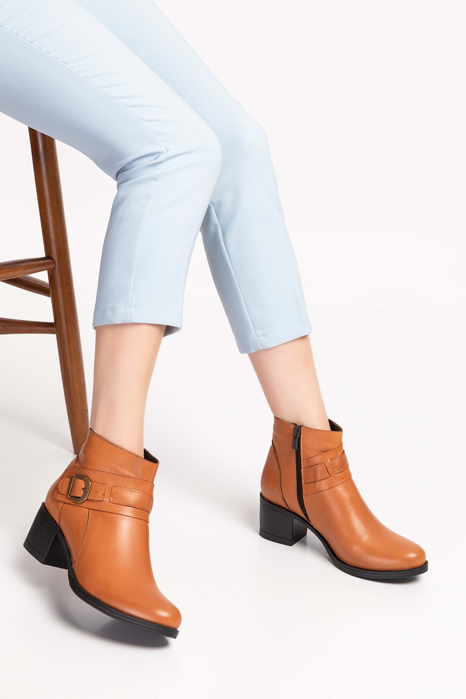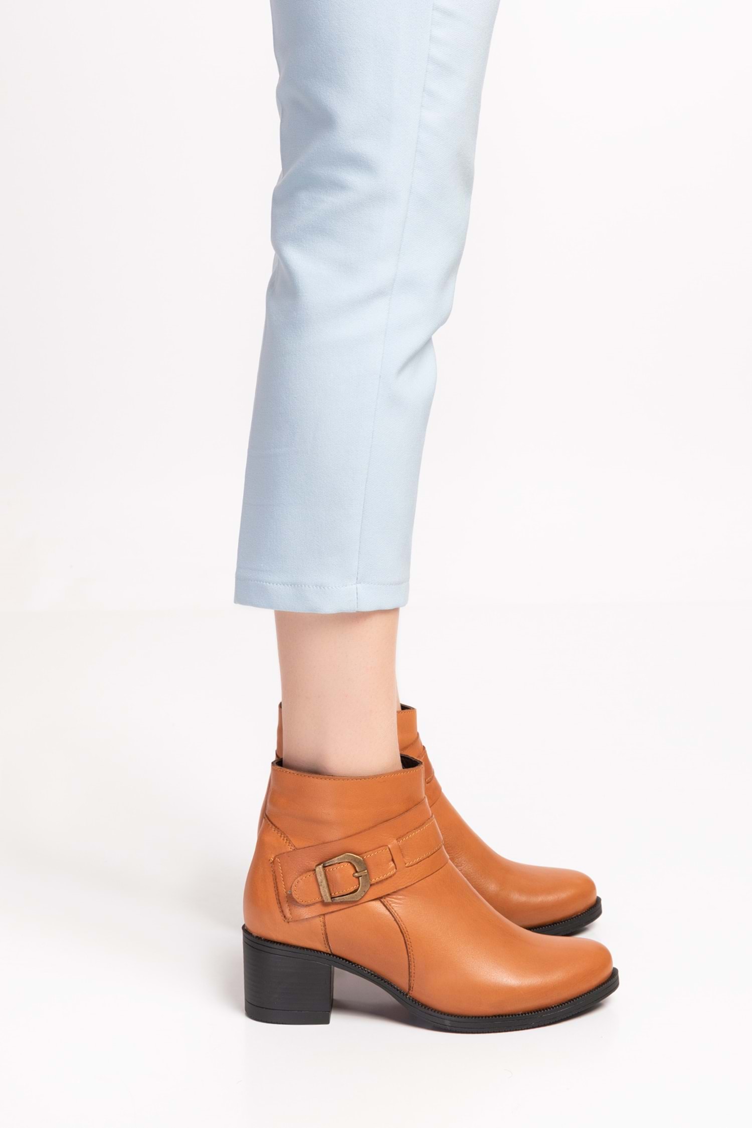 Gondol Kadın Hakiki Deri Kaymaz Taban Topuklu Bot okn.1063 - Taba - 36