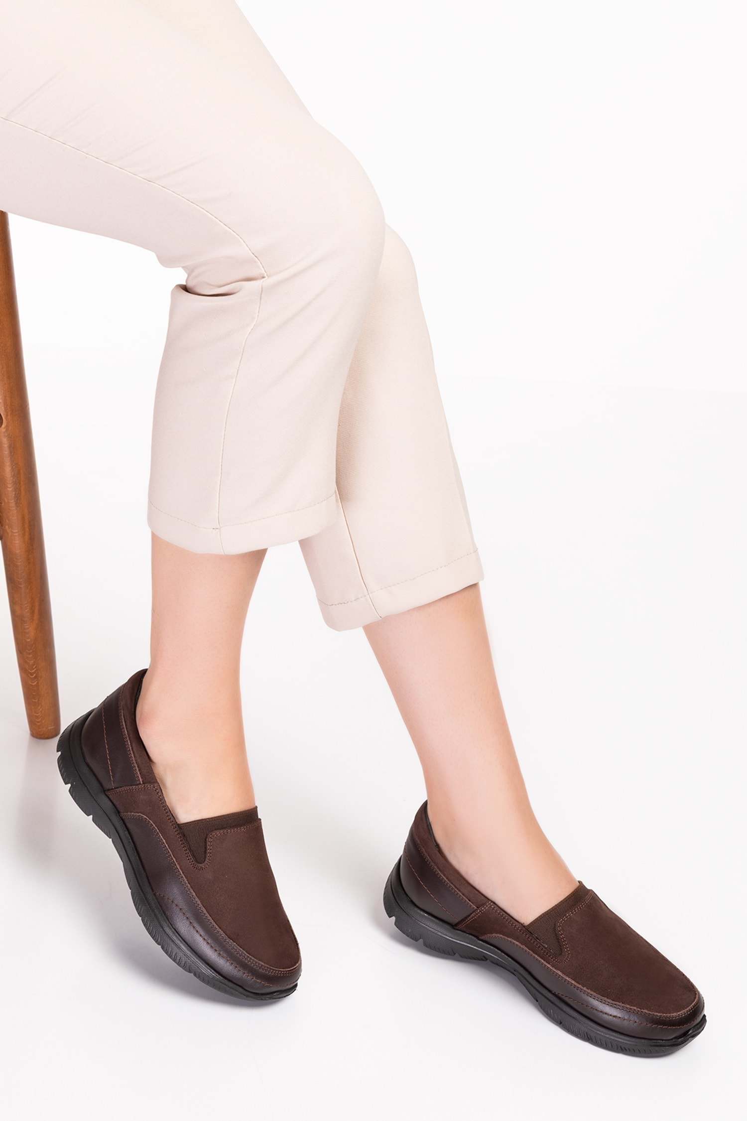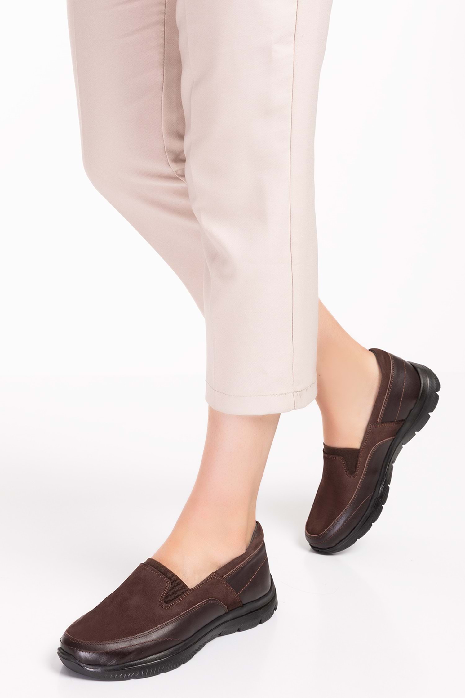 Gondol Hakiki Deri Faylon Anatomik Taban Hafif Ayakkabı es.119 - Kahve Nubuk - 36
