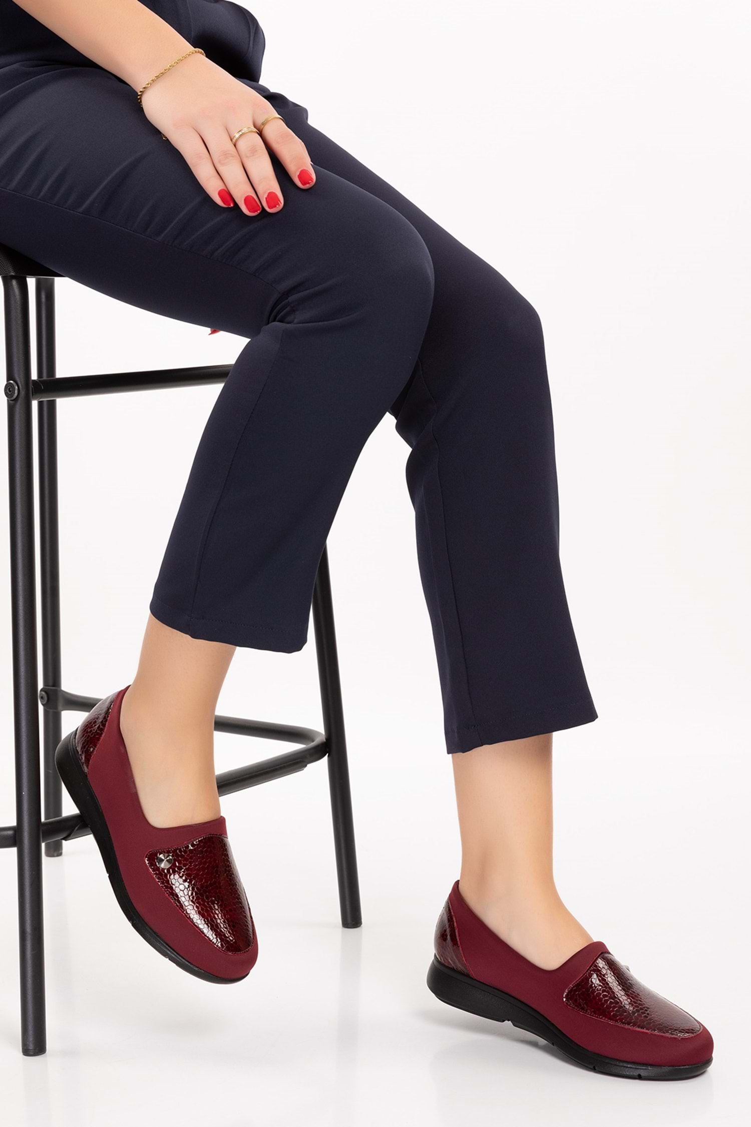 Gondol Hakiki Deri Yanları Strecli Günlük Ayakkabı vdt.195 - Bordo - 41