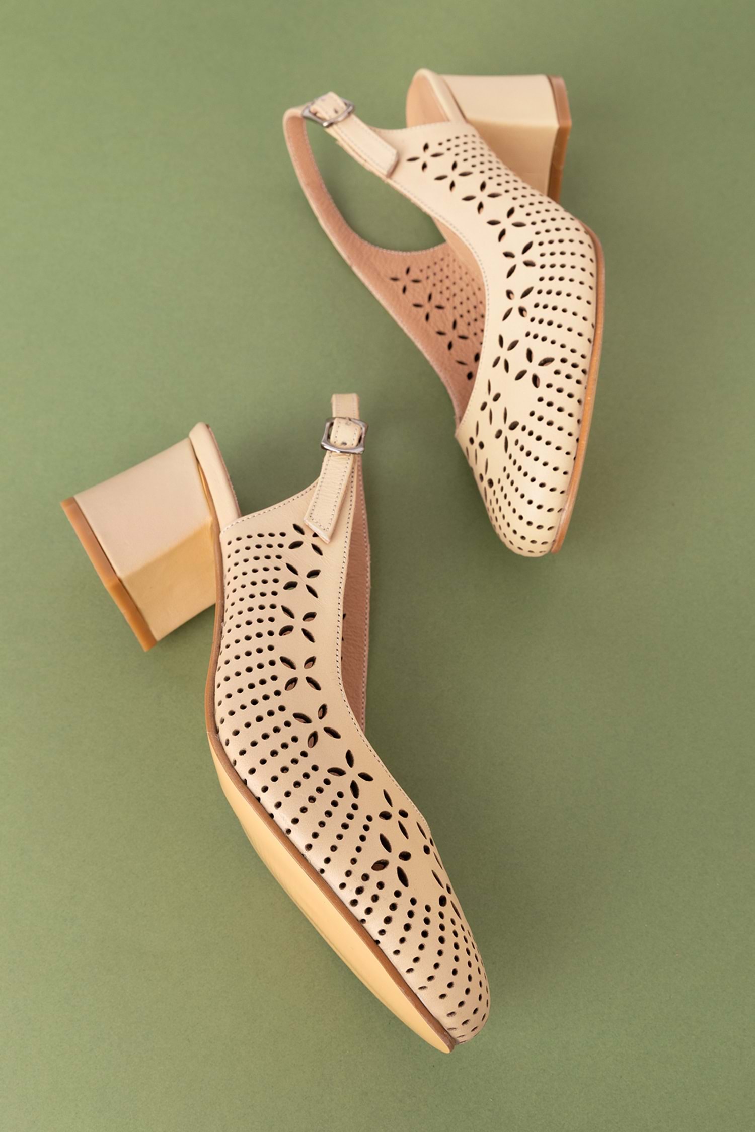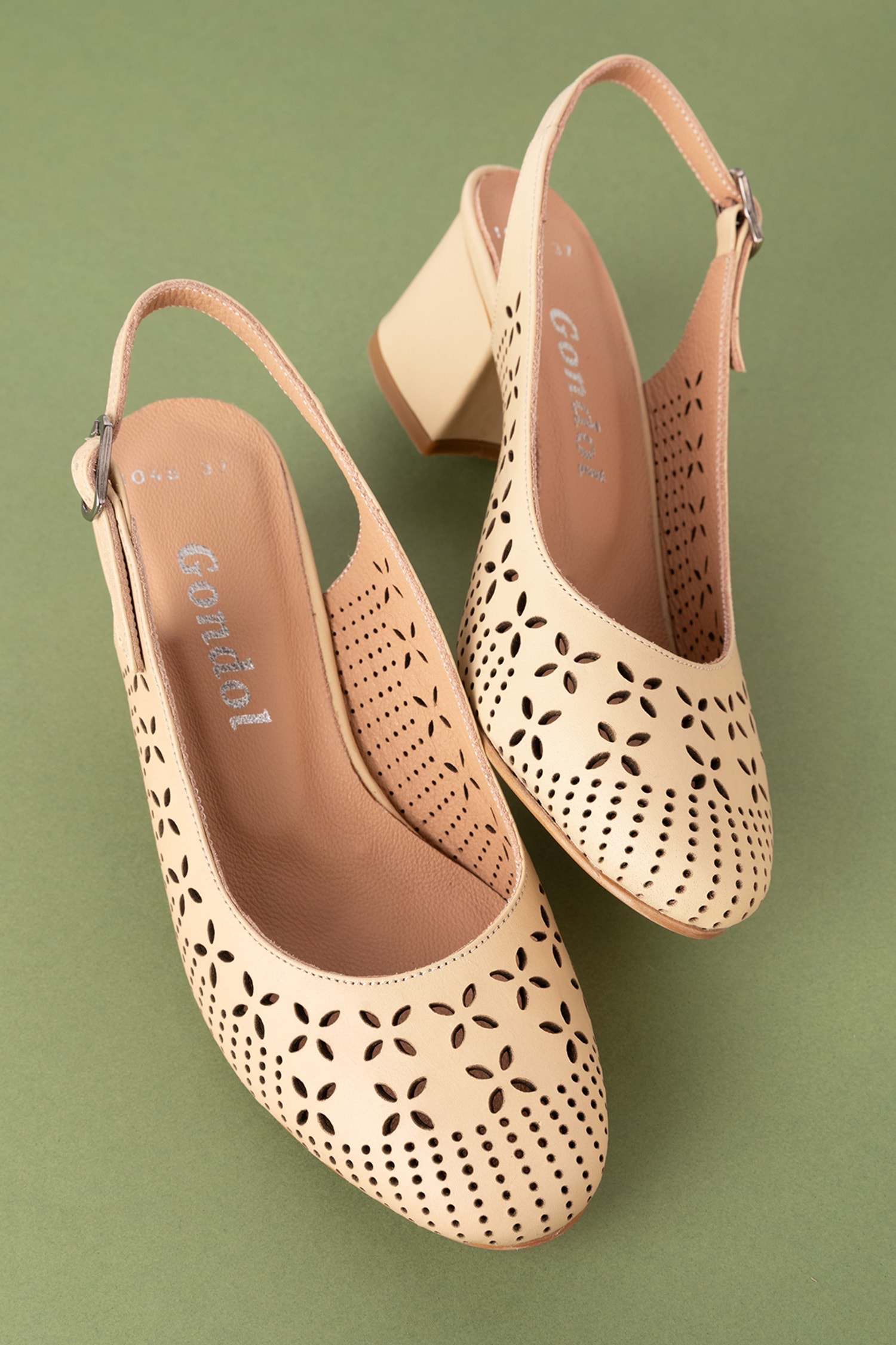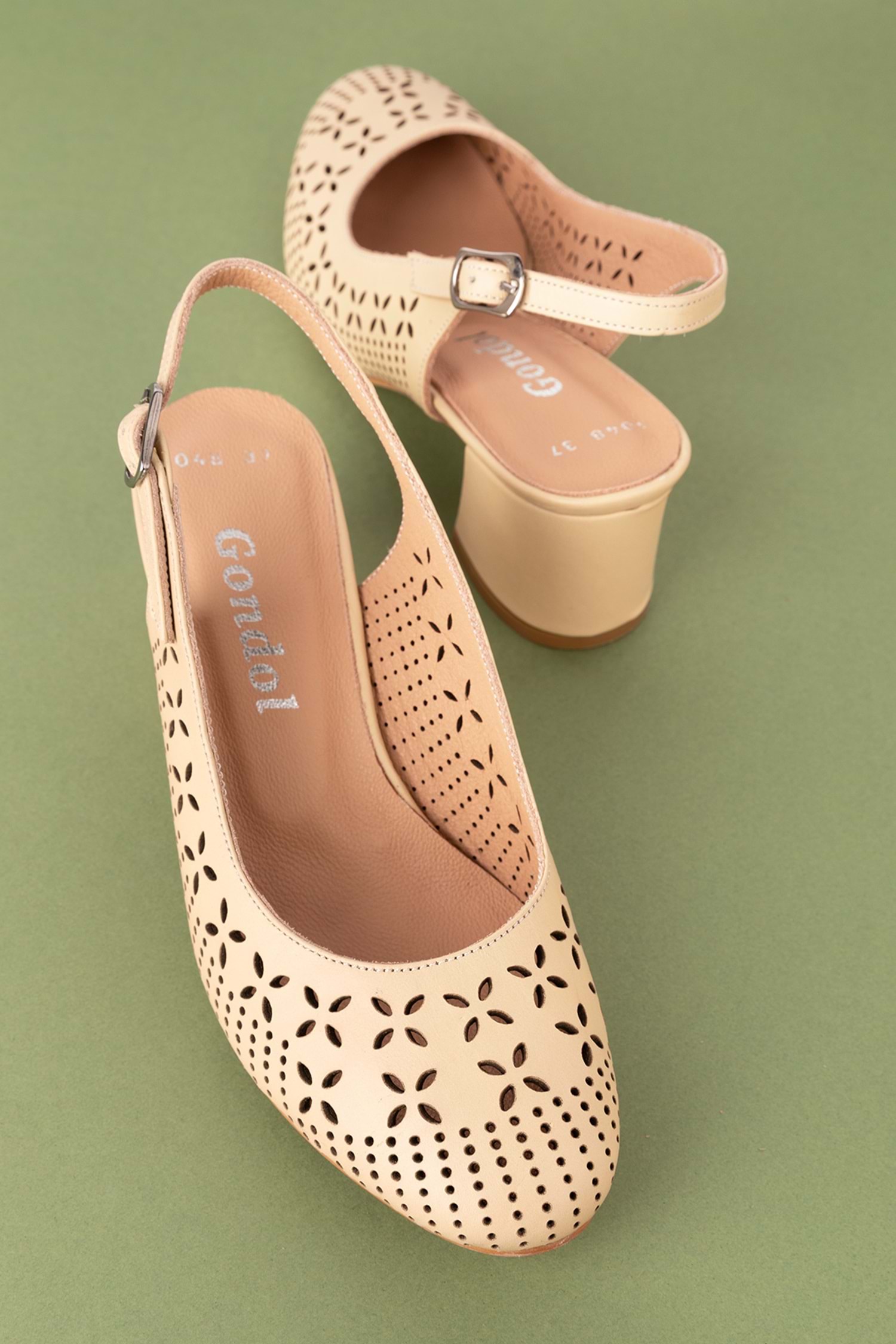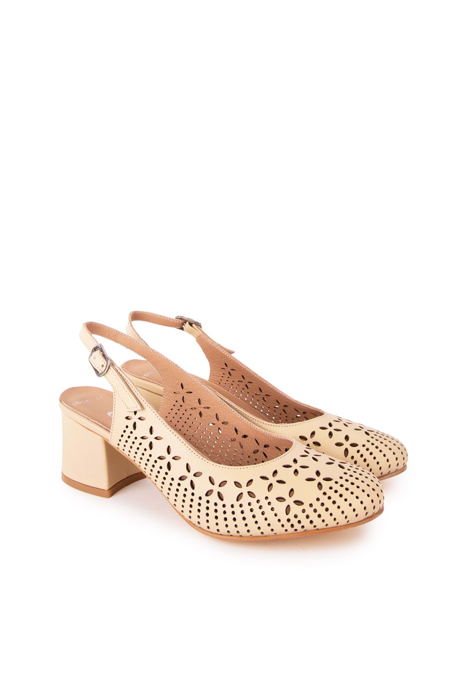 Gondol Hakiki Deri Lazer Kesim Şık Topuklu Ayakkabı şhn.1048 - Bej - 42