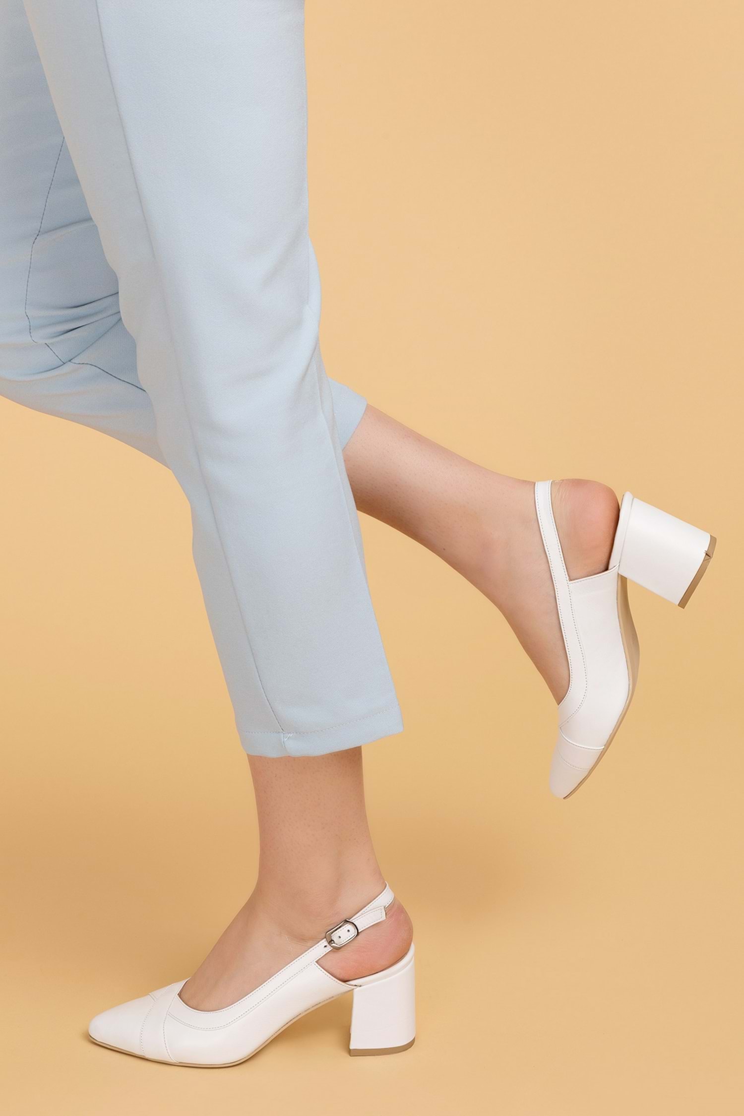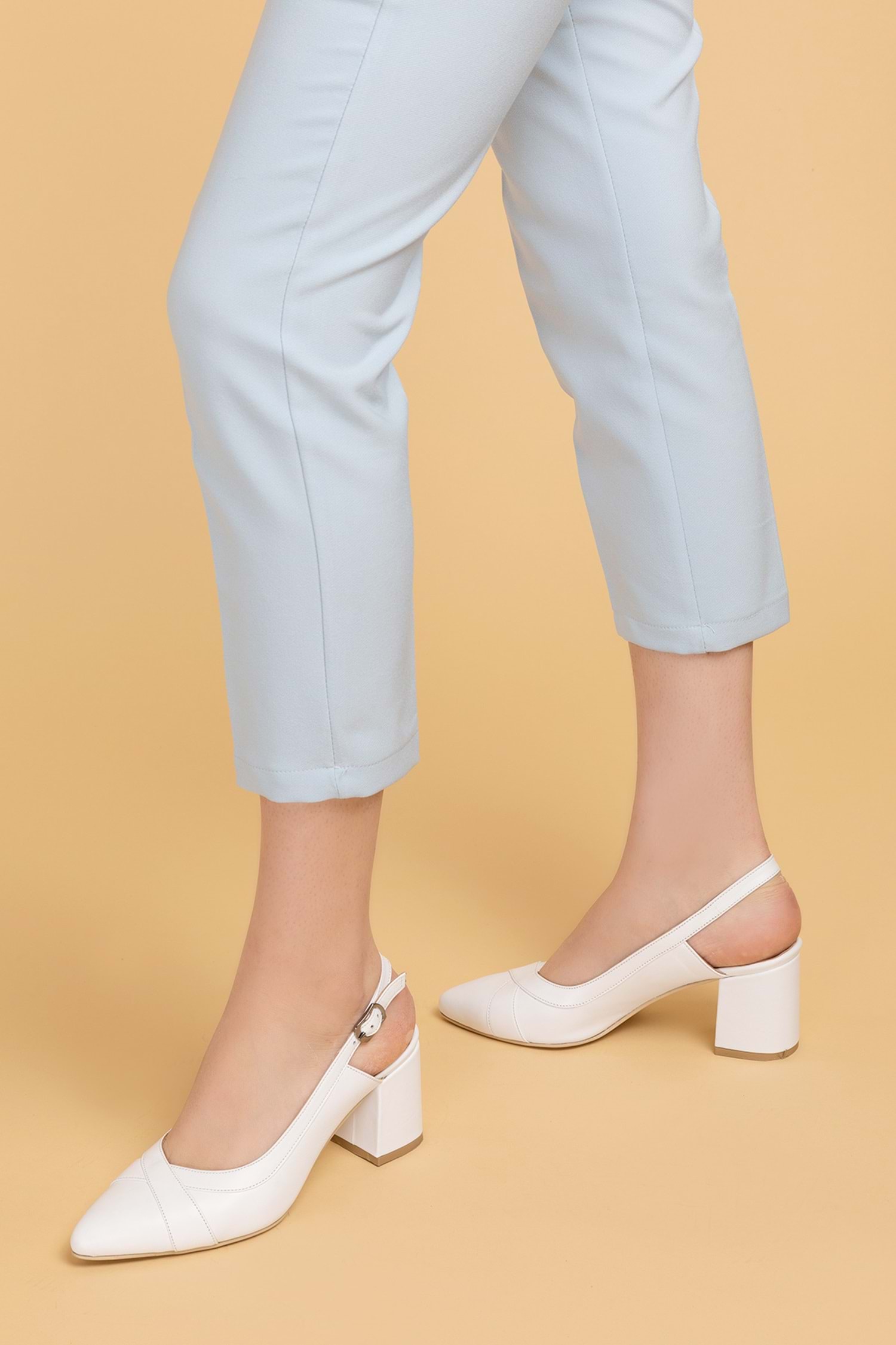 Gondol Hakiki Deri Topuklu Ayakkabı Beyaz 34 şhn.741