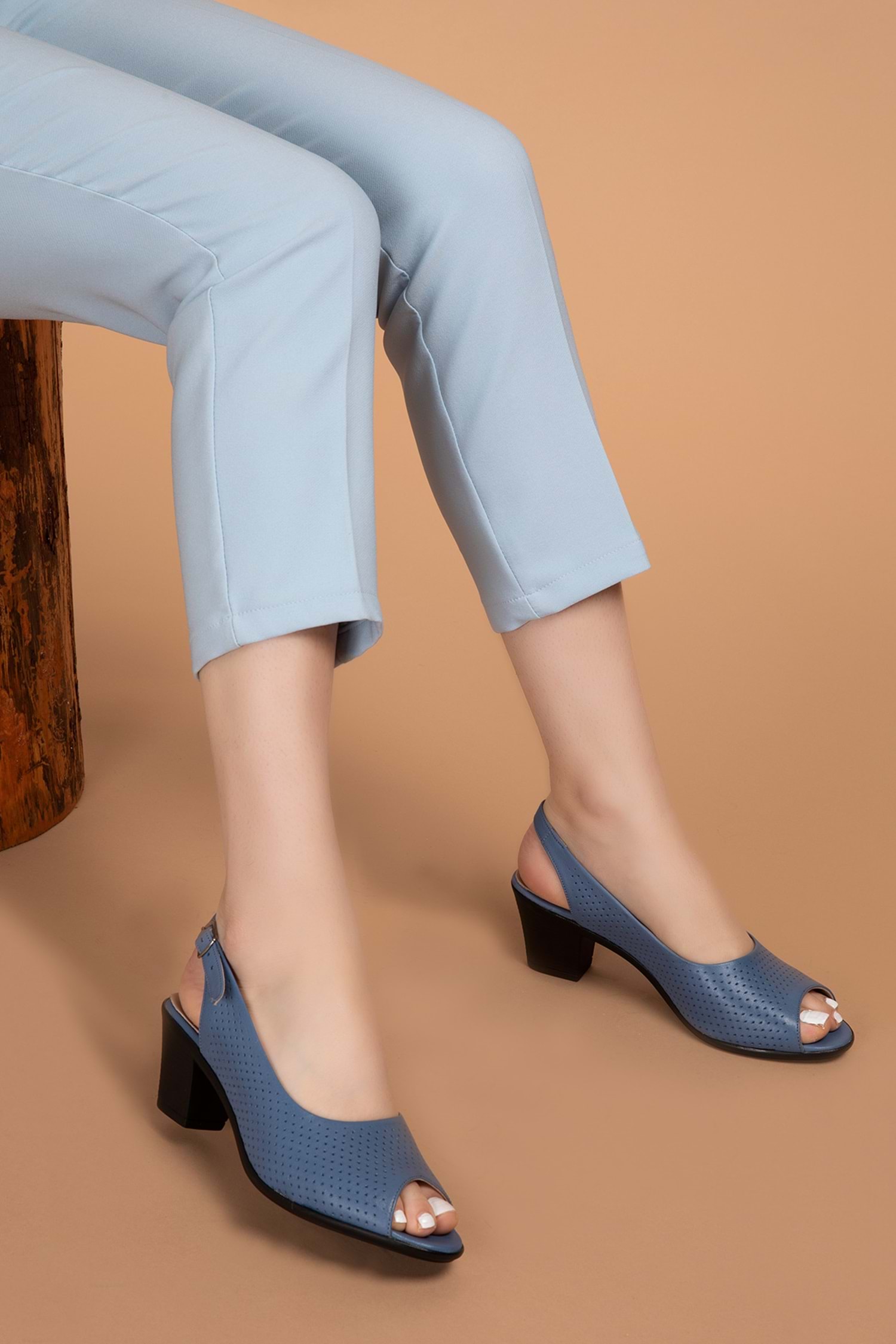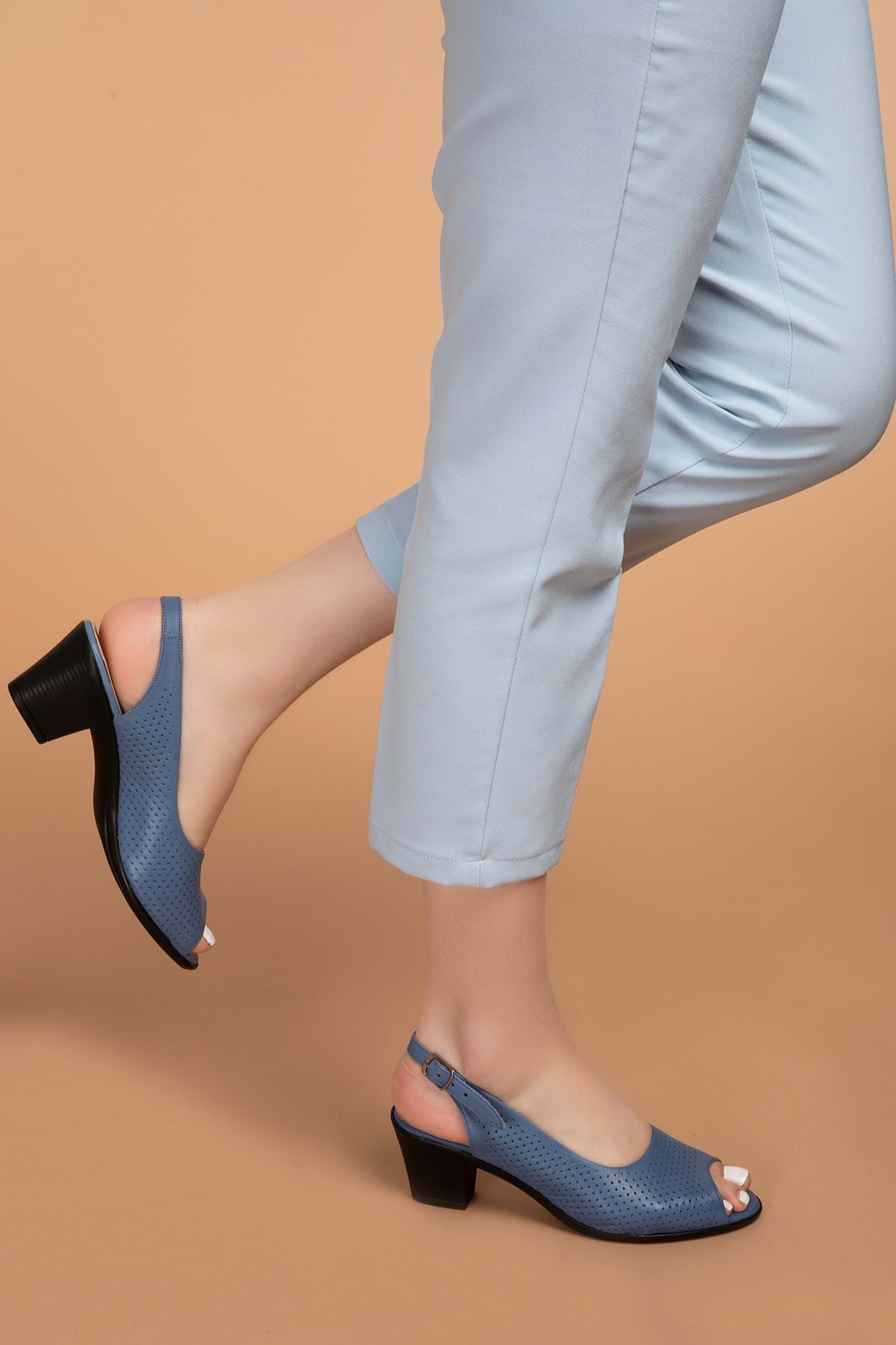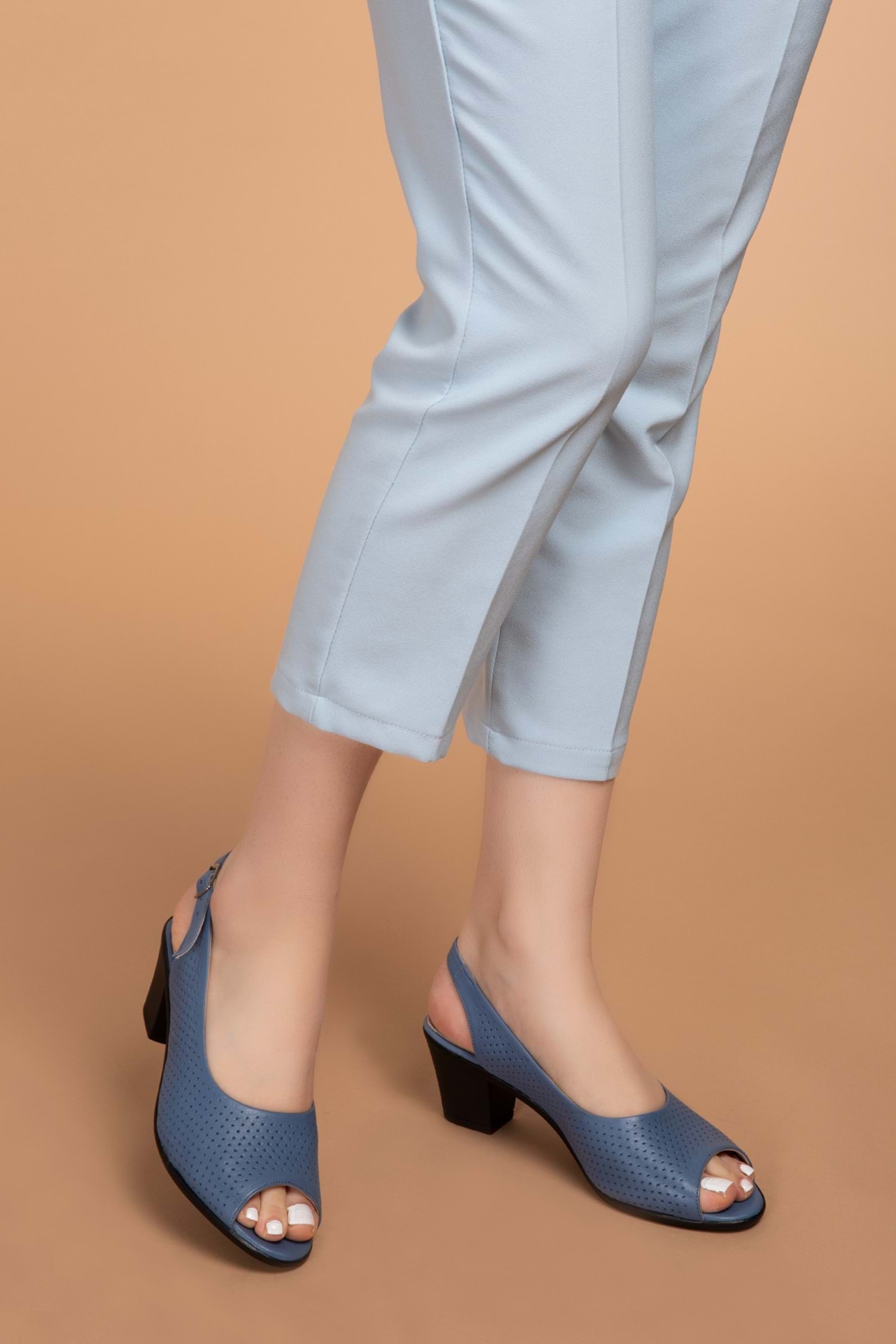 Gondol Hakiki Deri Topuklu Ayakkabı vdt.211 - Mavi - 35