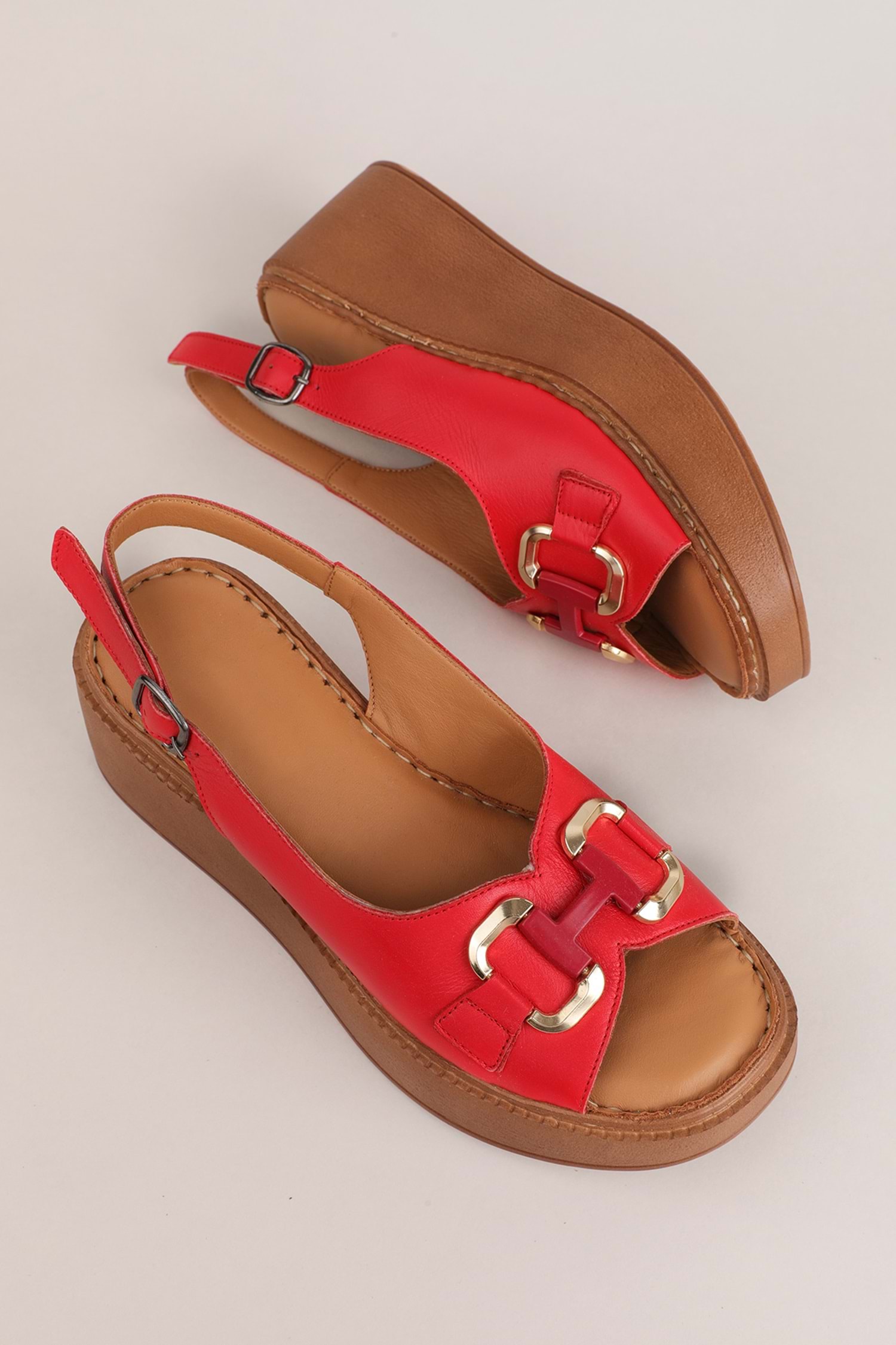 * Hakiki Deri Sandalet * Topuk Boyu 4 cm * %100 El İşçiliği *Ortopedik Taban