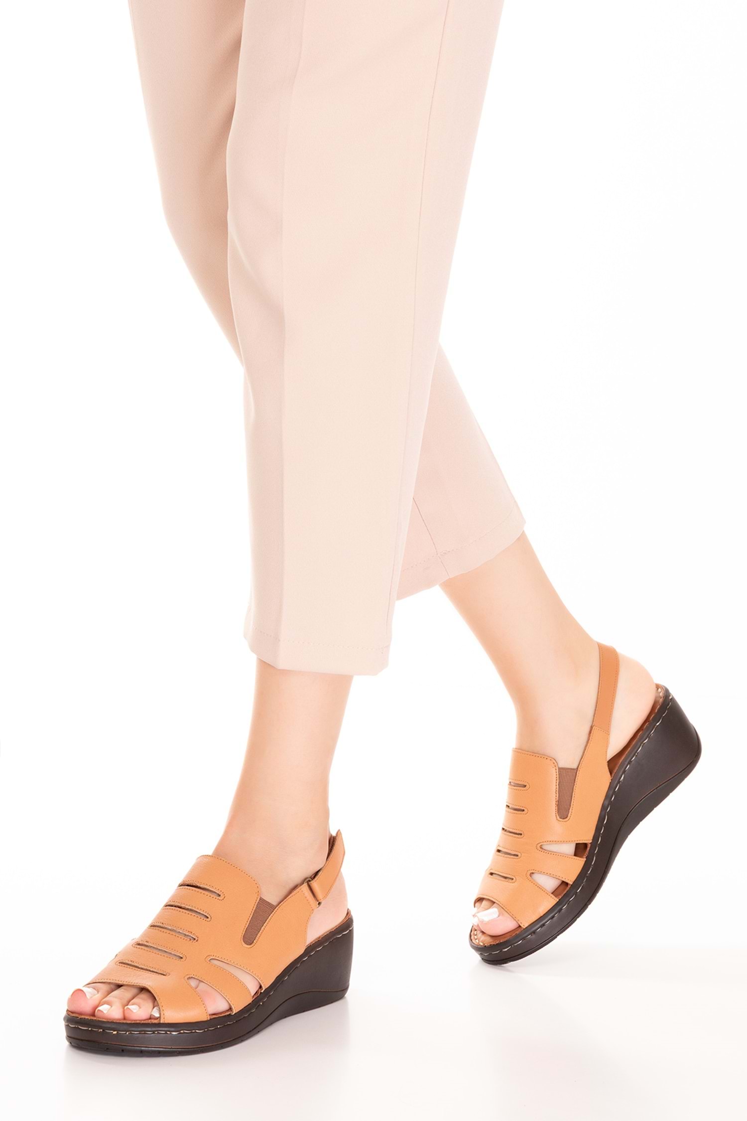 * Hakiki Deri Sandalet * Topuk Boyu 4 cm * %100 El İşçiliği *Ortopedik Taban