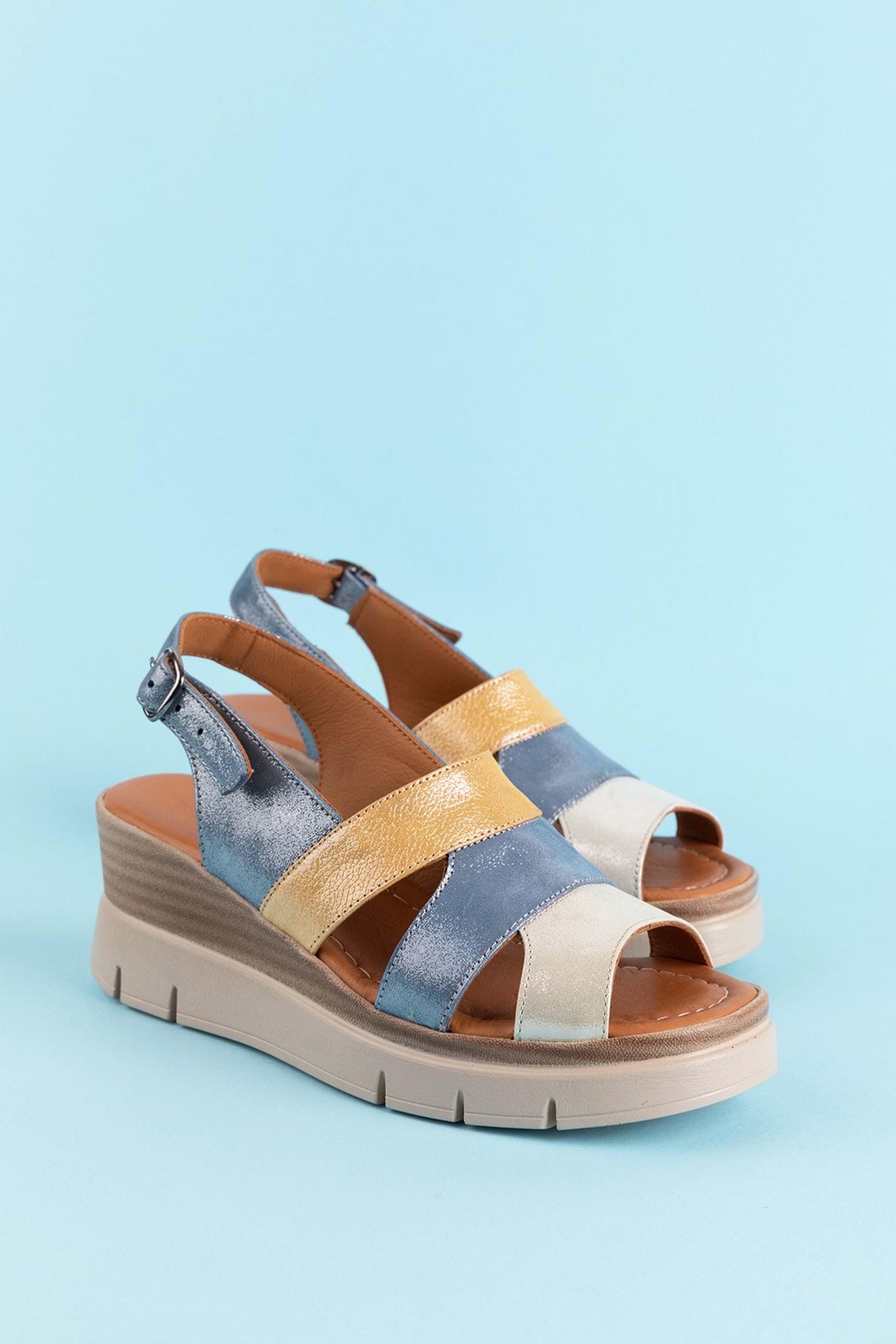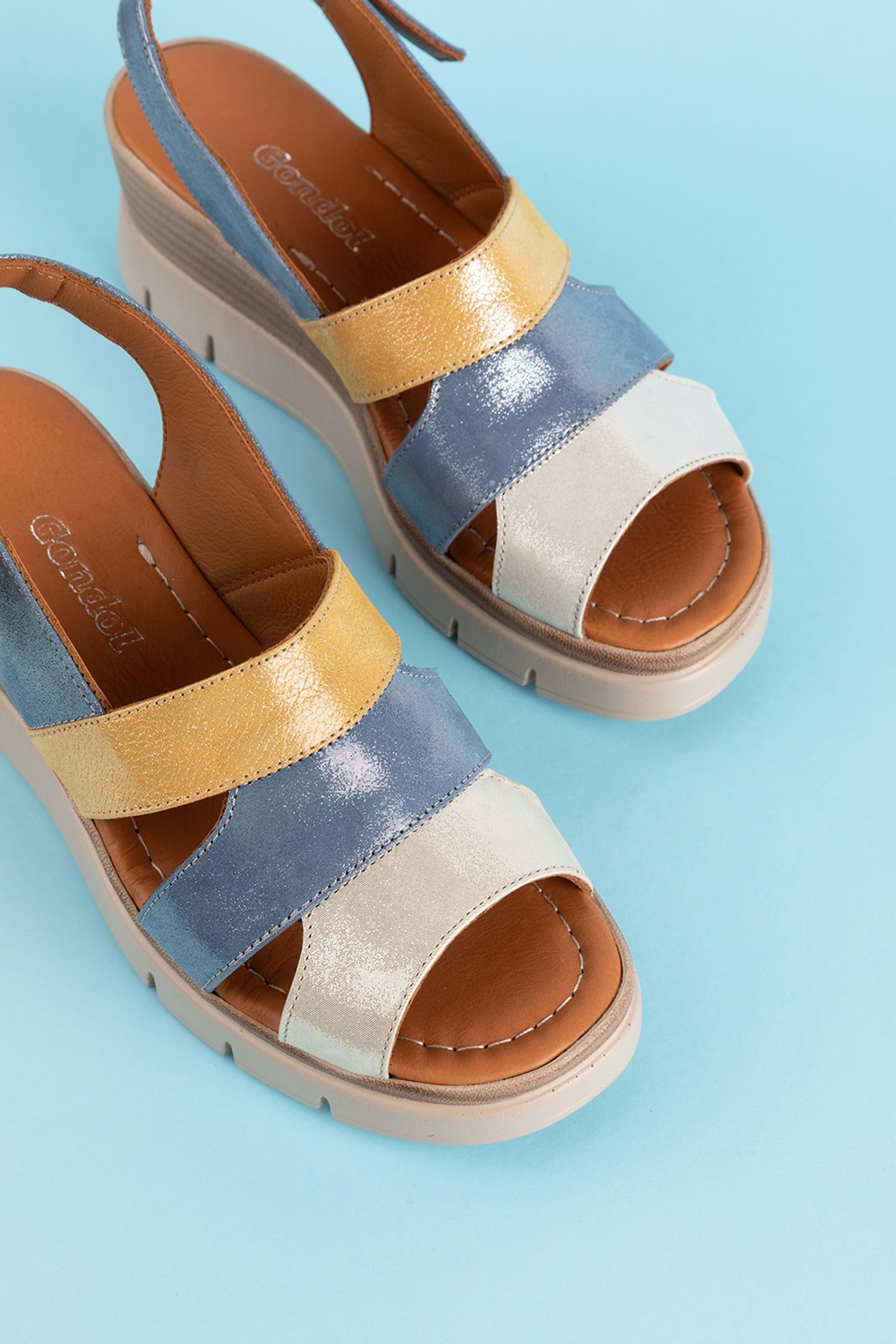 Gondol Hakiki Deri Renkli Kombin Dolgu Topuklu Sandalet mlk.5808 - Mavi Kombin - 36