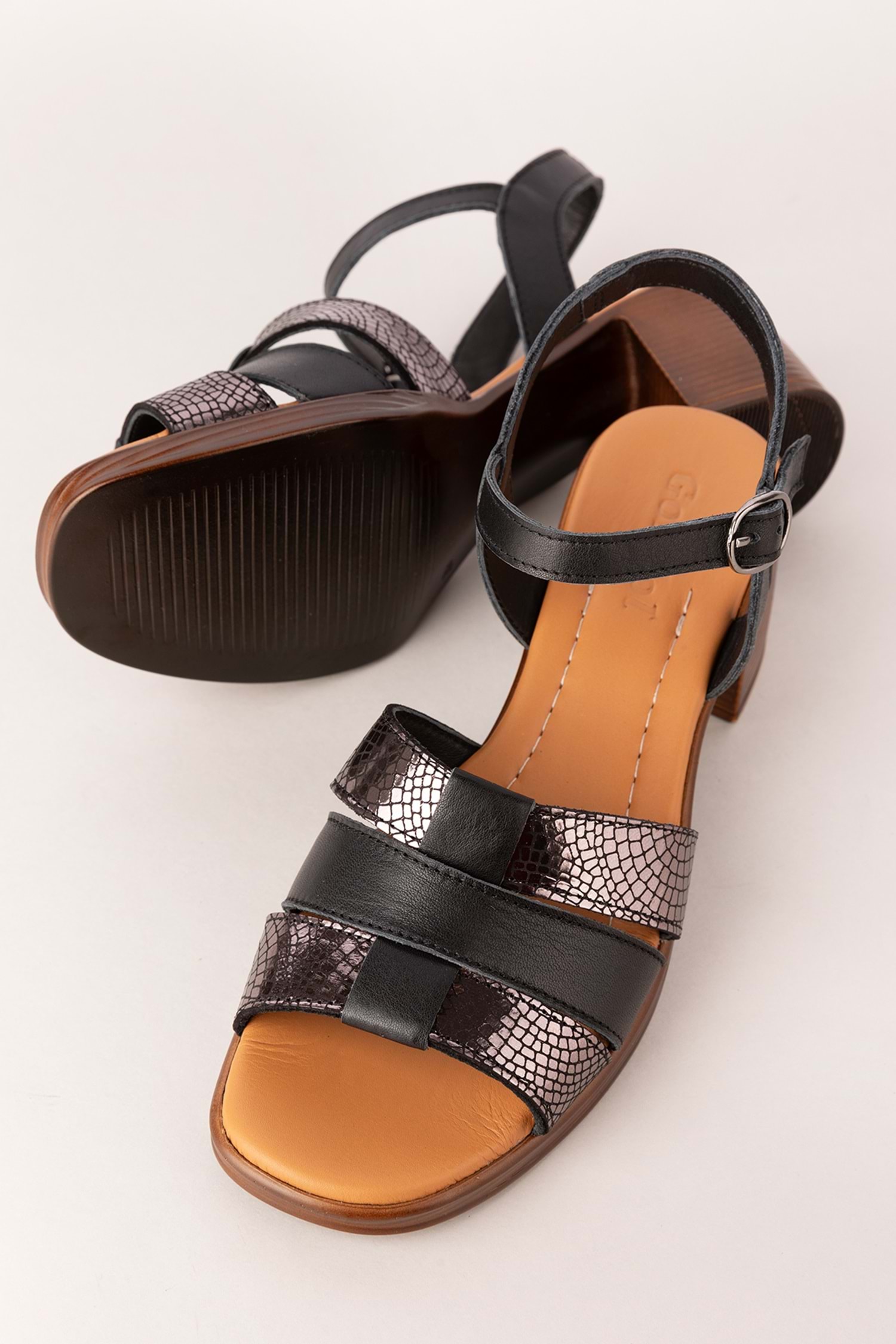 Gondol Hakiki Deri Topuklu Sandalet iz.13112 - Siyah - 40