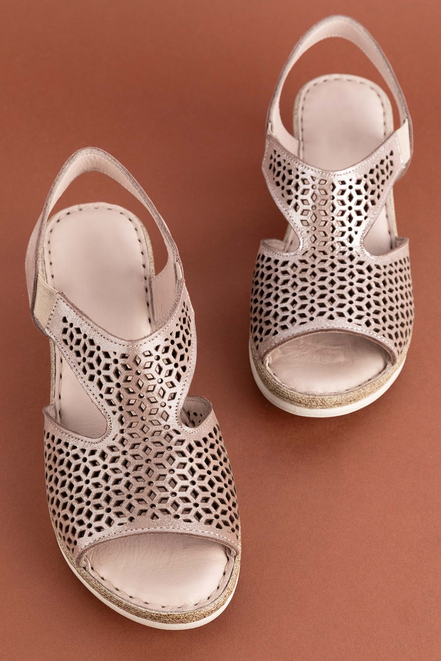 Gondol Kadın Hakiki Deri Dolgu Topuklu Lazer Kesim Sandalet iz.2502 - Gri - 41