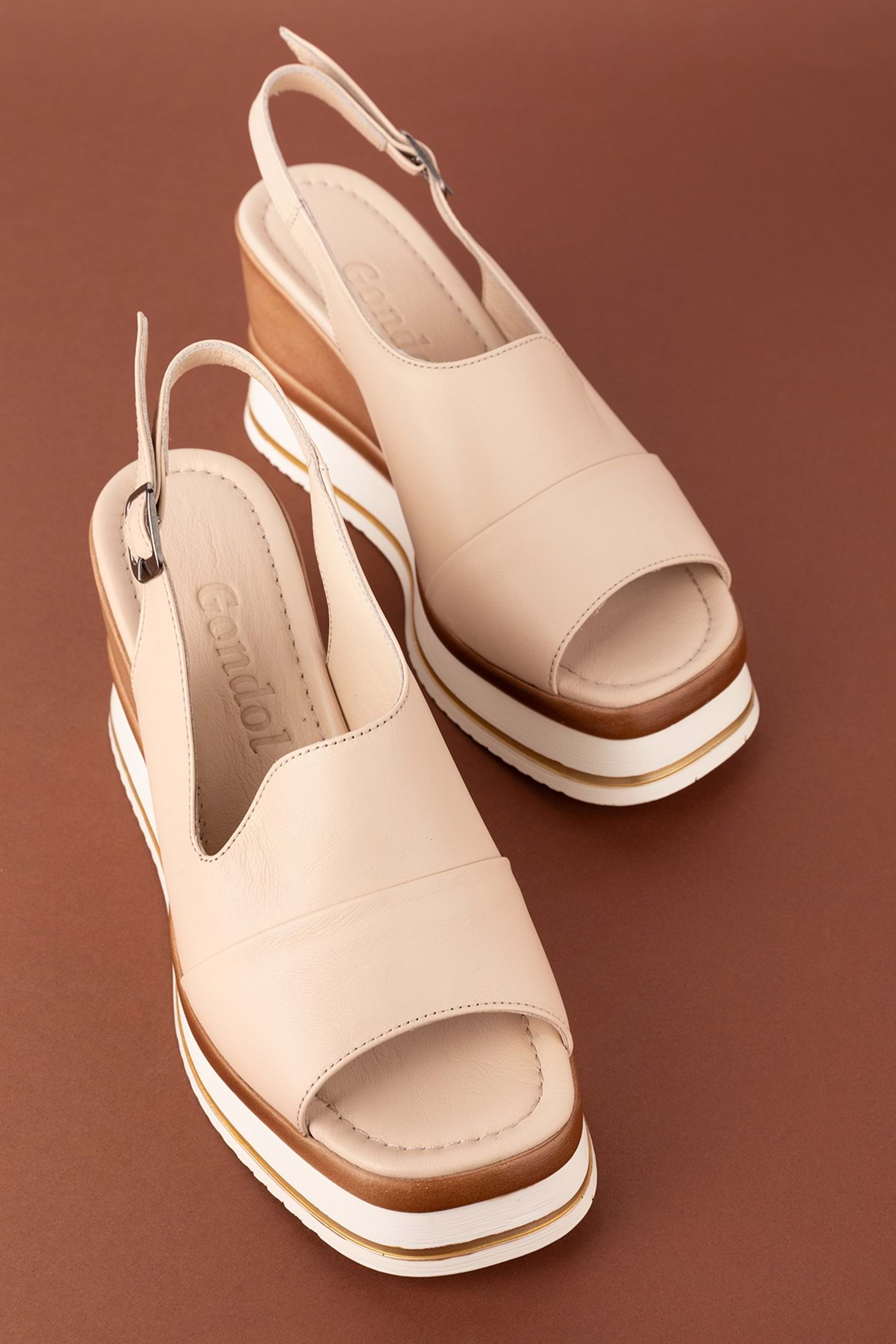 Gondol Kadın Hakiki Deri Platform Topuklu Rahat Günlük Sandalet tlh.904 - Bej - 37