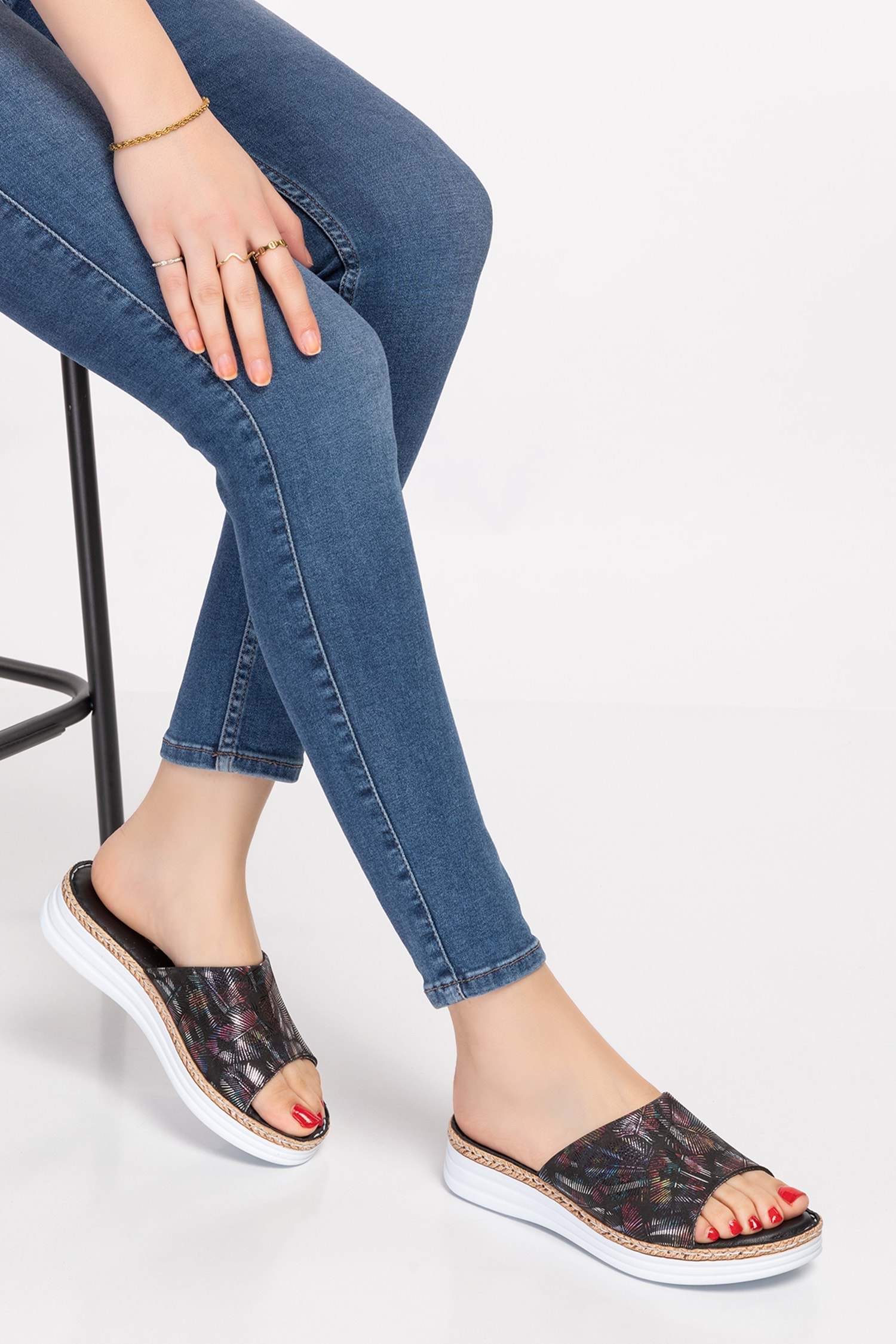 Gondol Hakiki Deri Anatomik Taban Baskılı Terlik Kla.10 - Siyah - 37