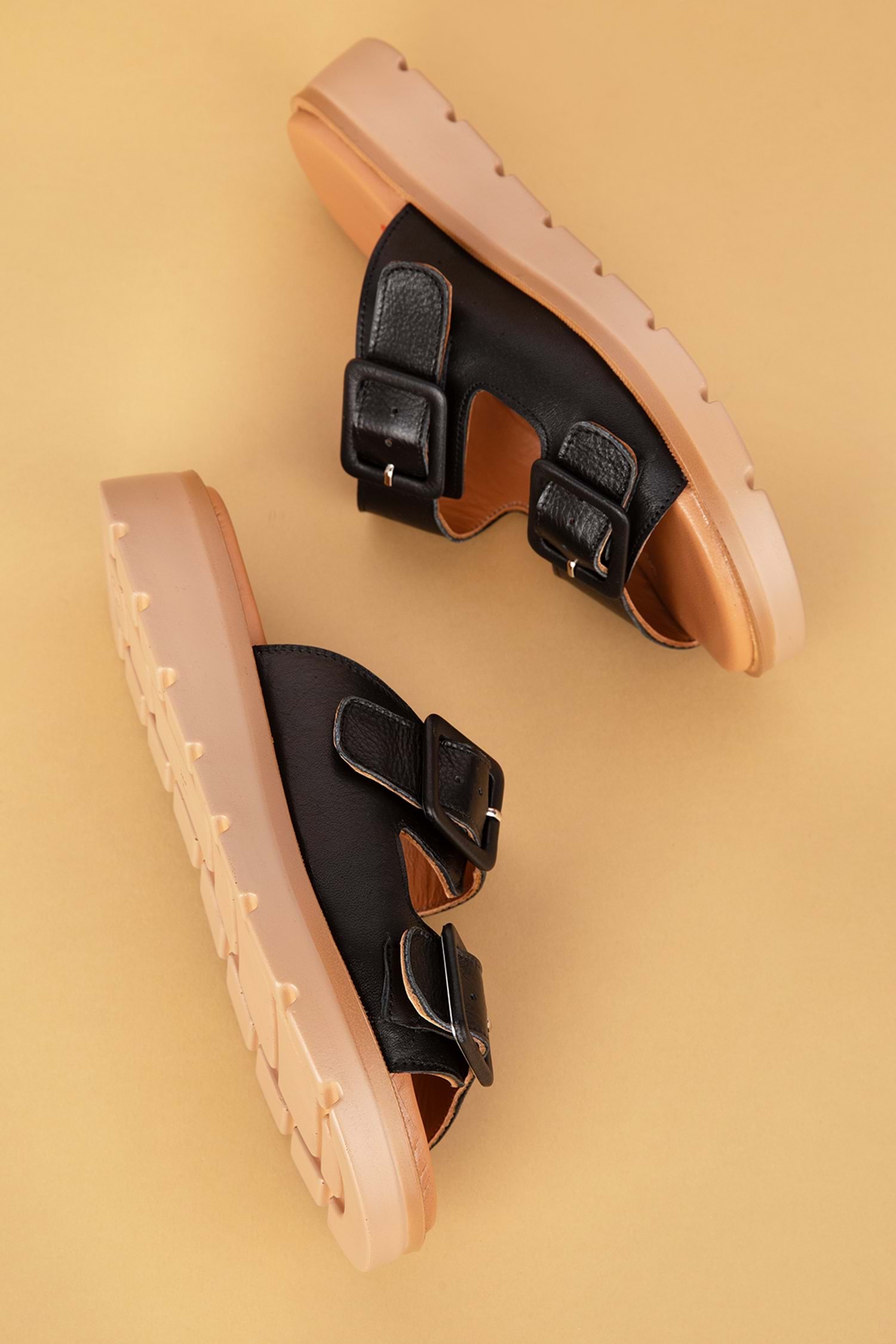 Gondol Kadın Hakiki Deri Çift Tokalı Terlik mlk.002 - Siyah - 40