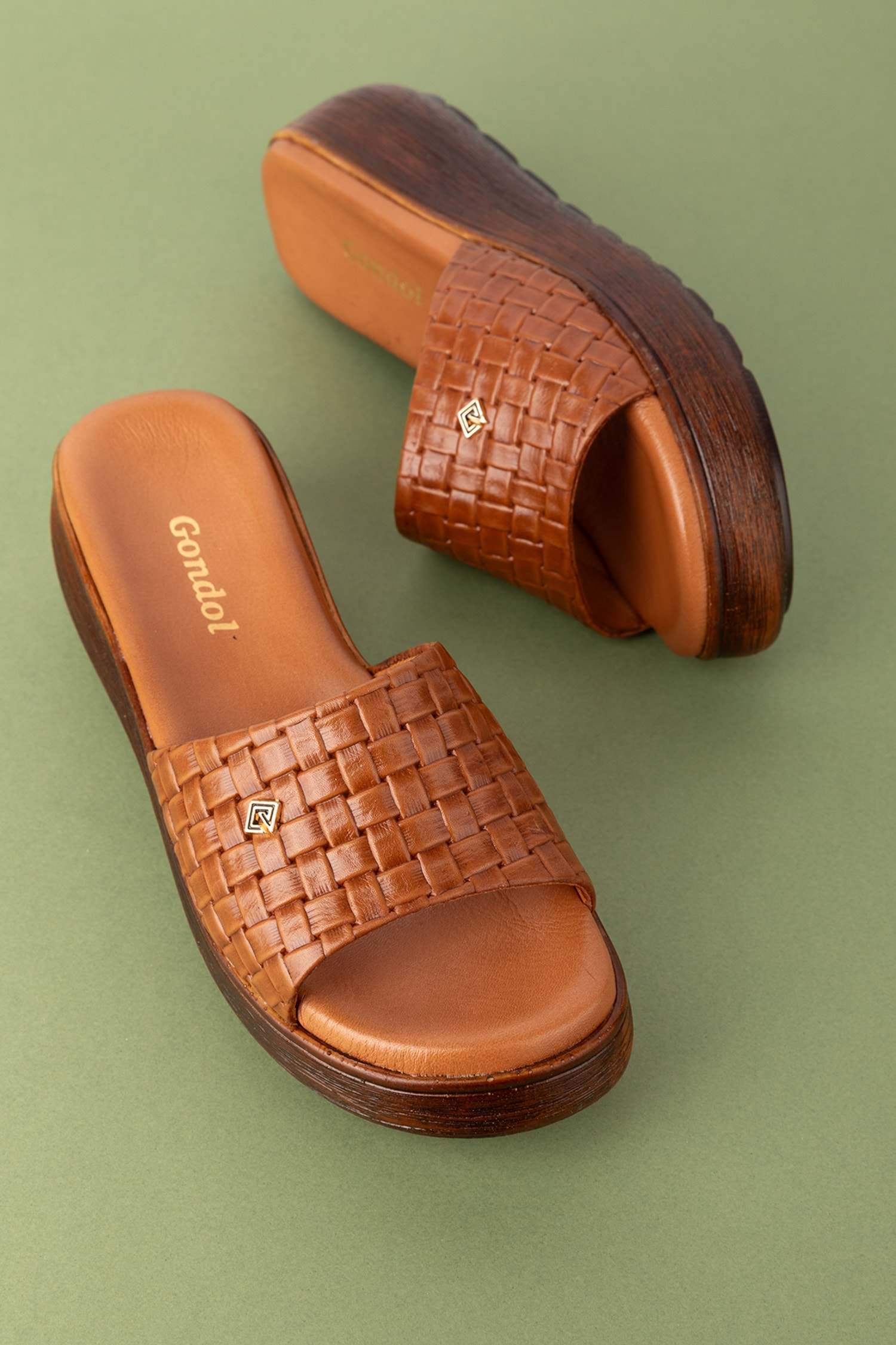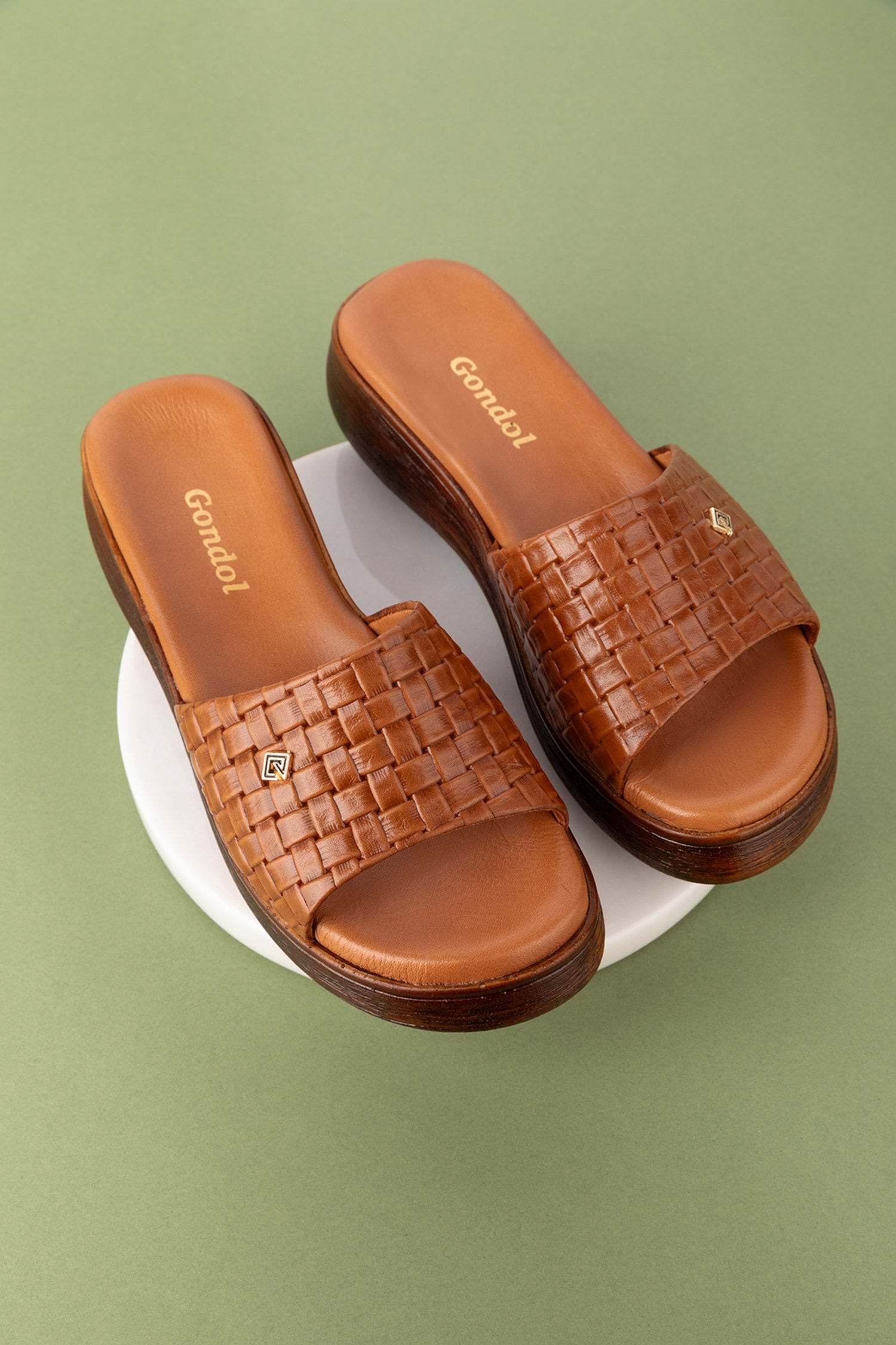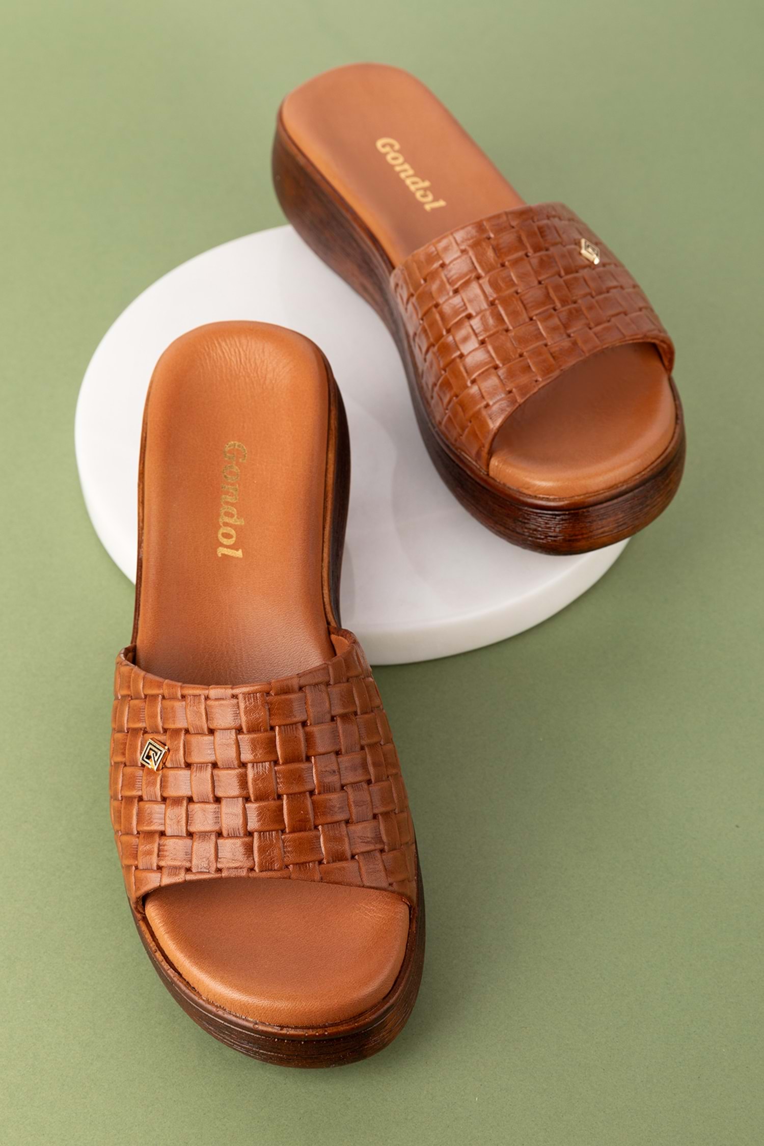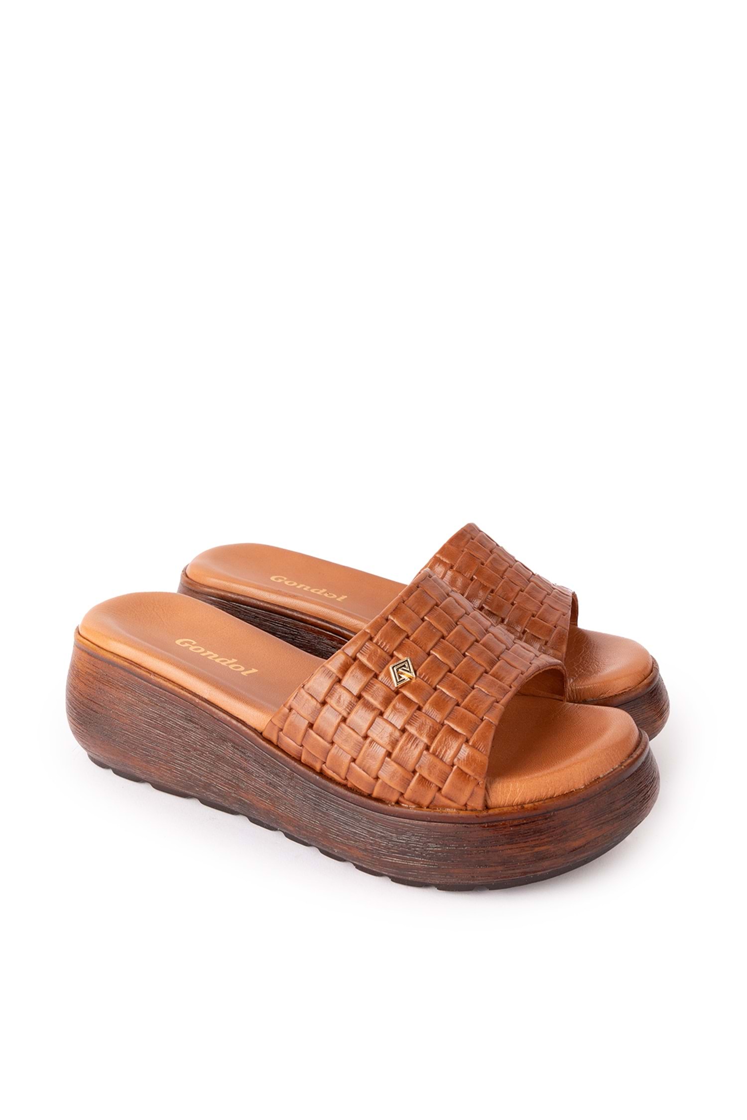 Gondol Kadın Hakiki Deri Günlük Dolgu Topuklu Terlik yprk.2401 - Taba - 39