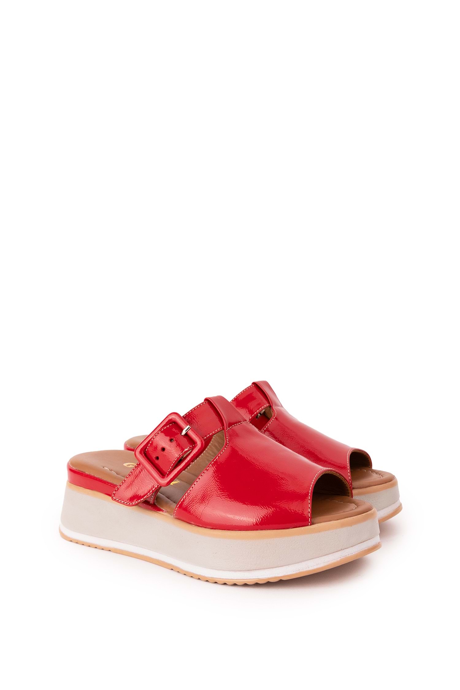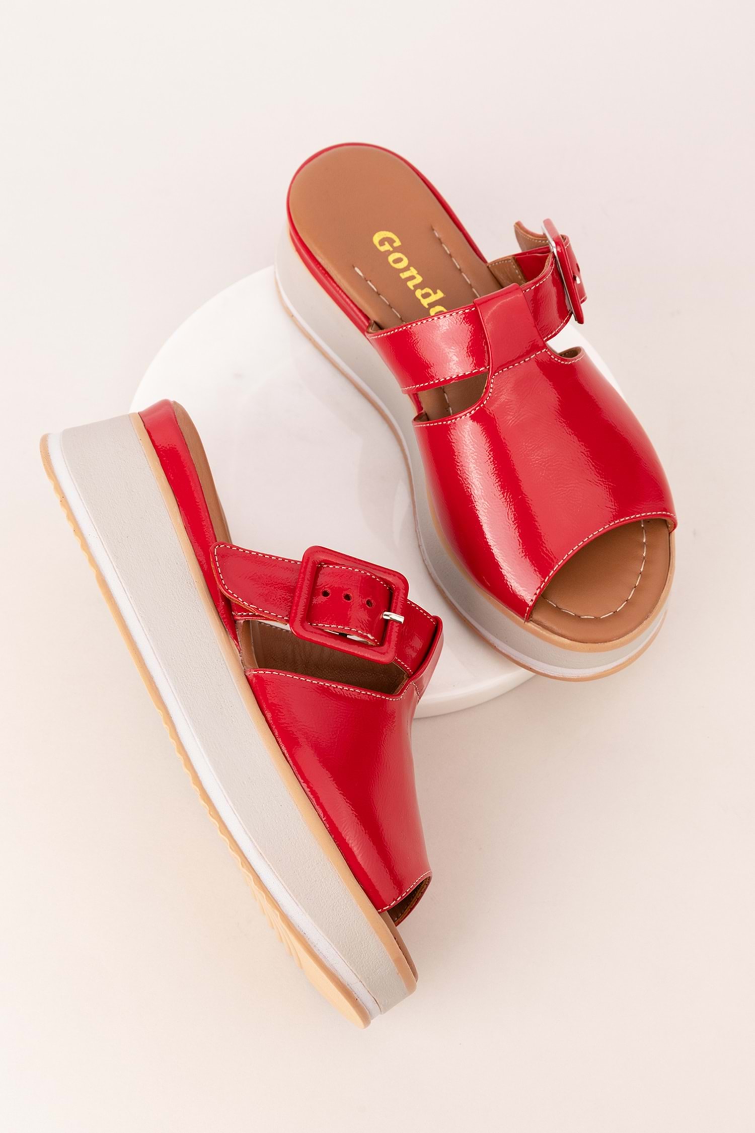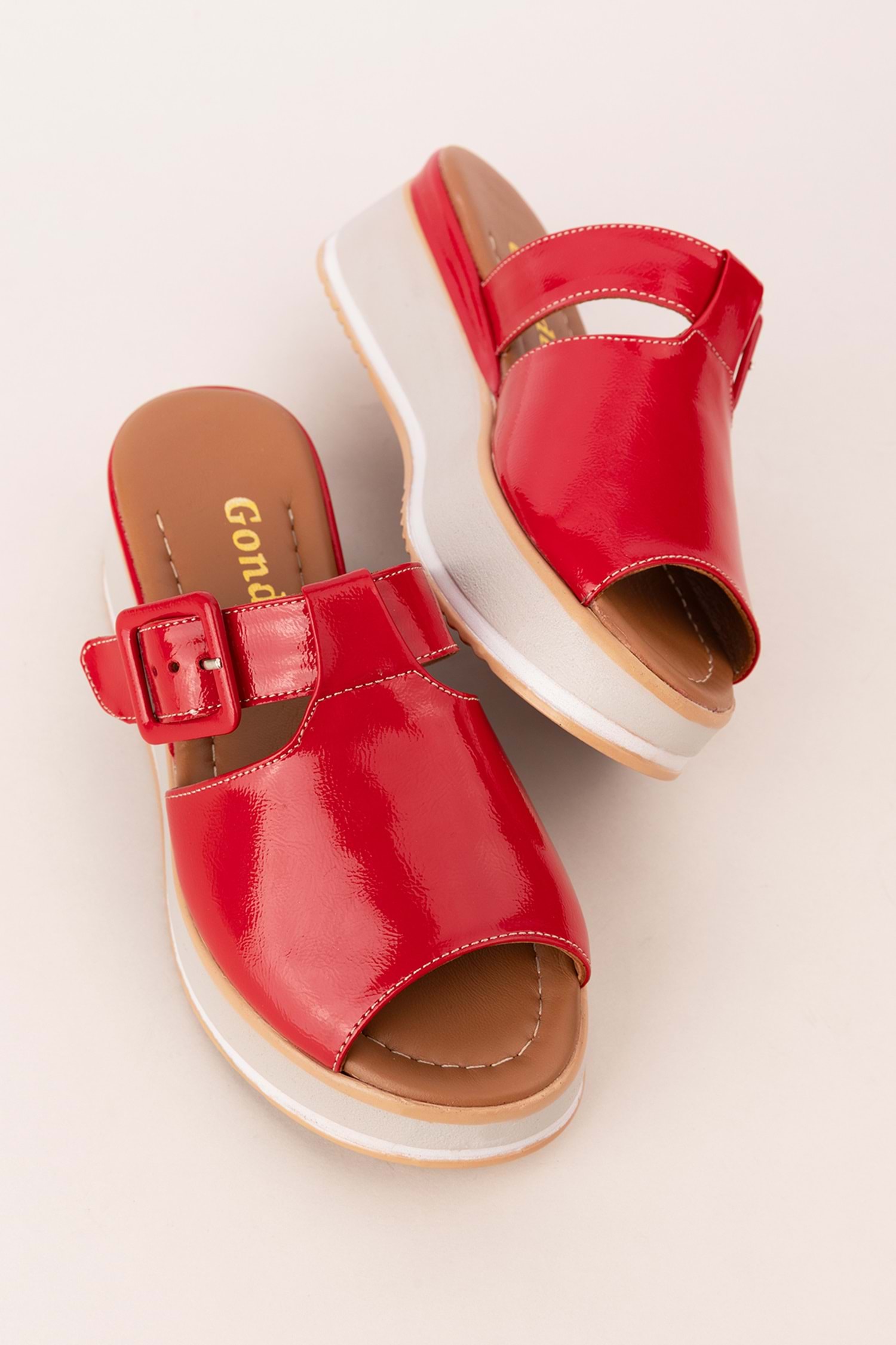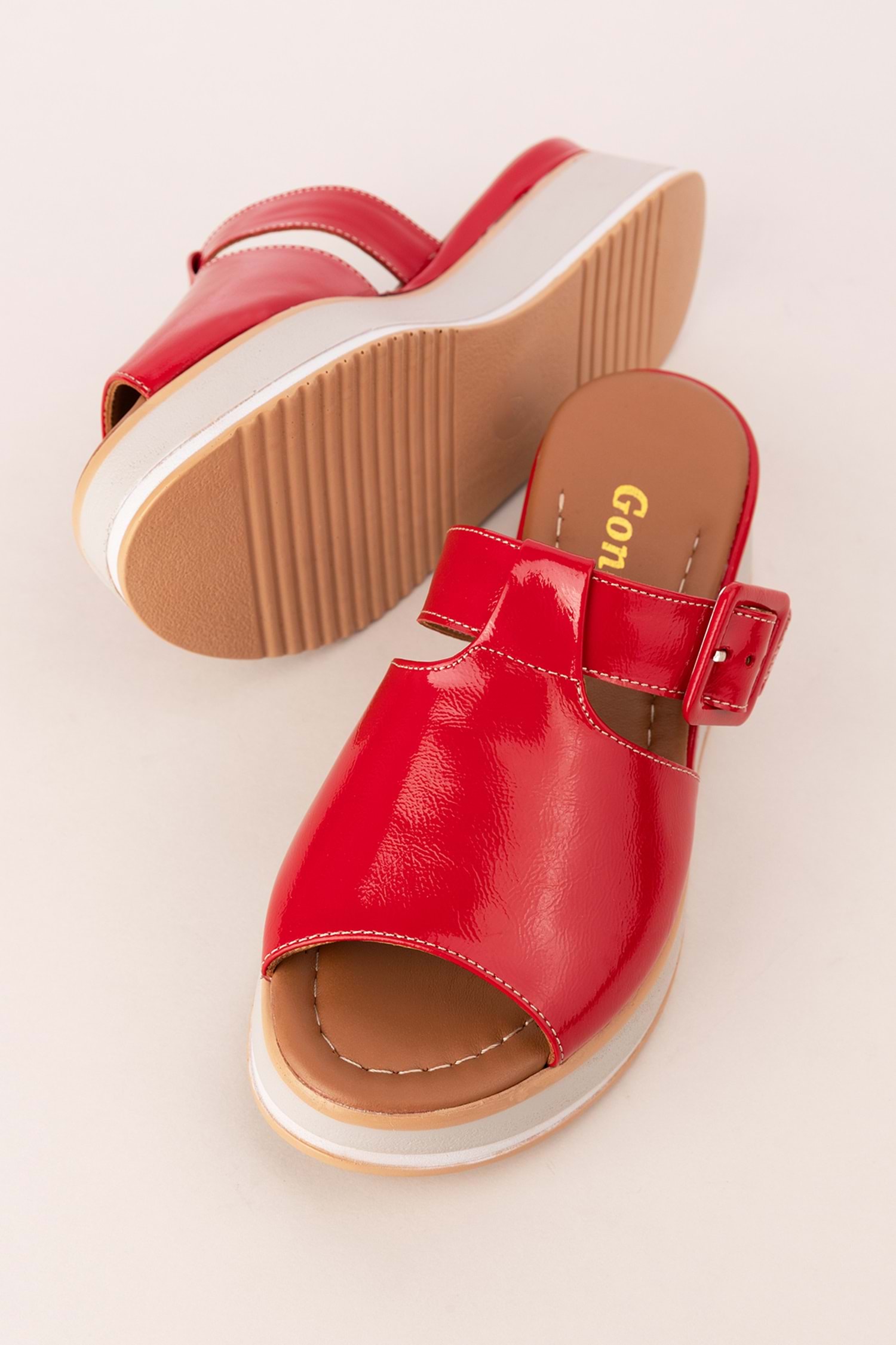 Gondol Kadın Hakiki Deri Platform Tabanlı Renkli Terlik mlk.5224 - Kırmızı Rugan - 37