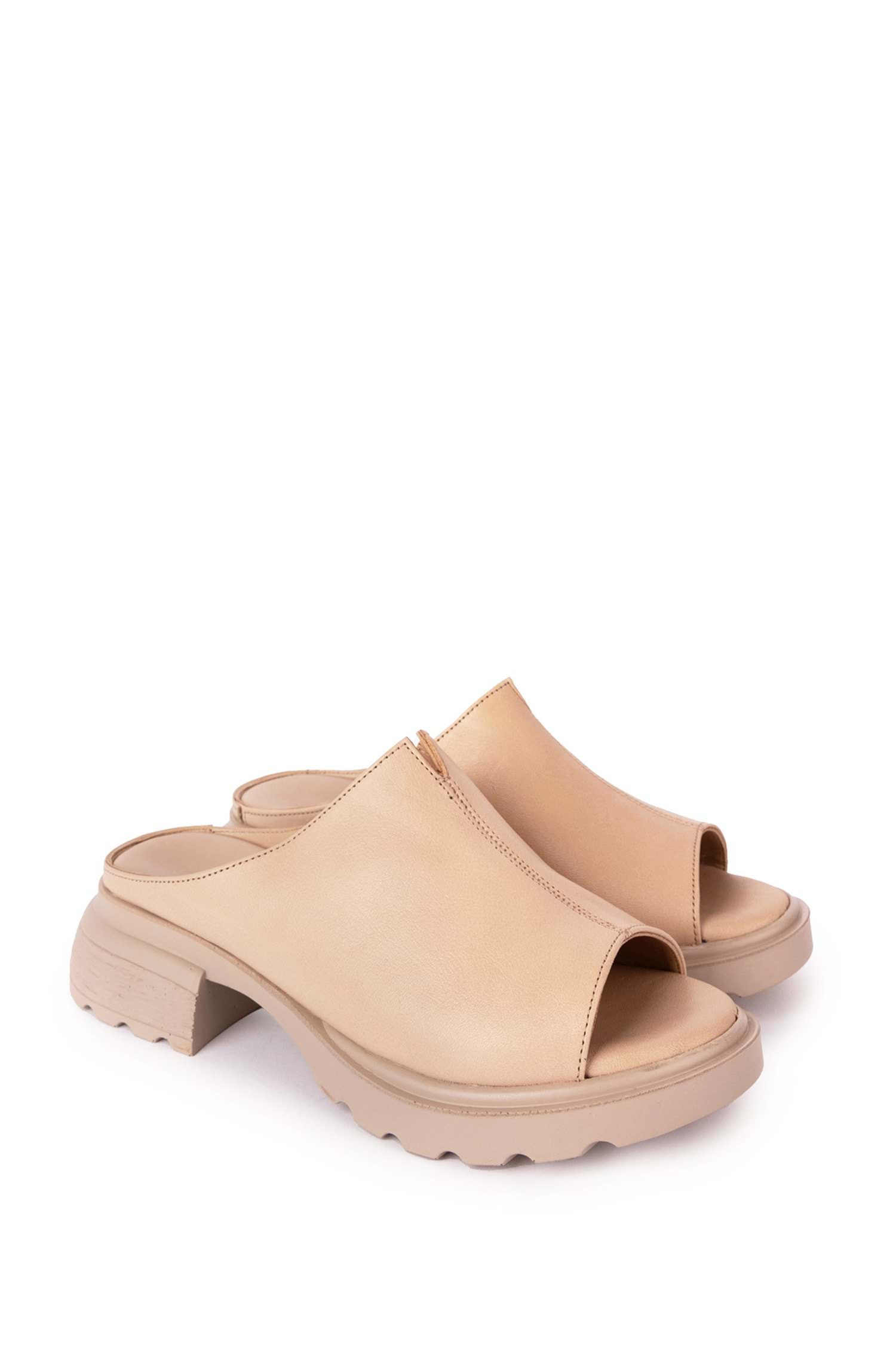Gondol Kadın Hakiki Deri Şık Orta Topuklu Terlik elnr.1064 - Bej - 41