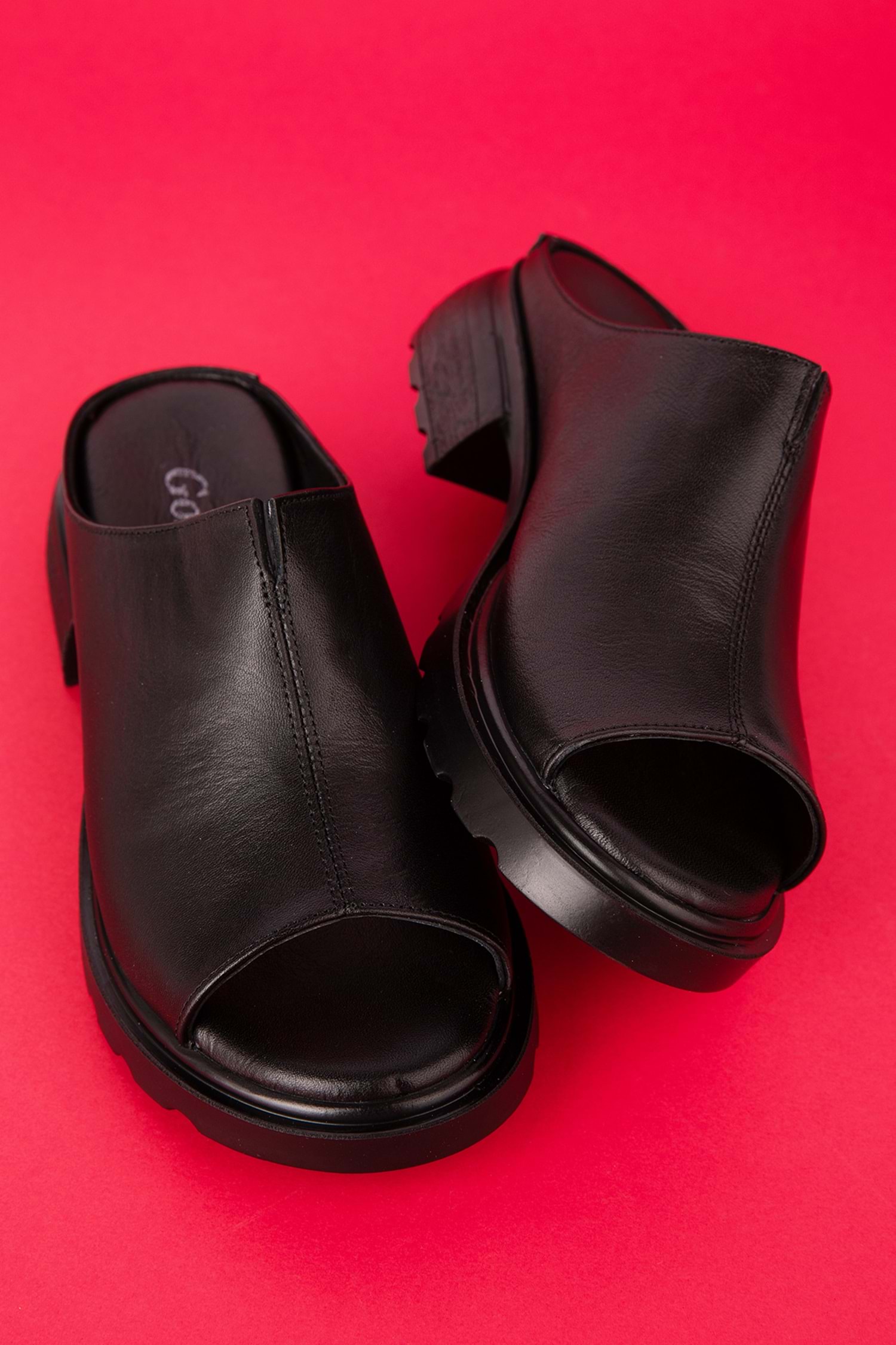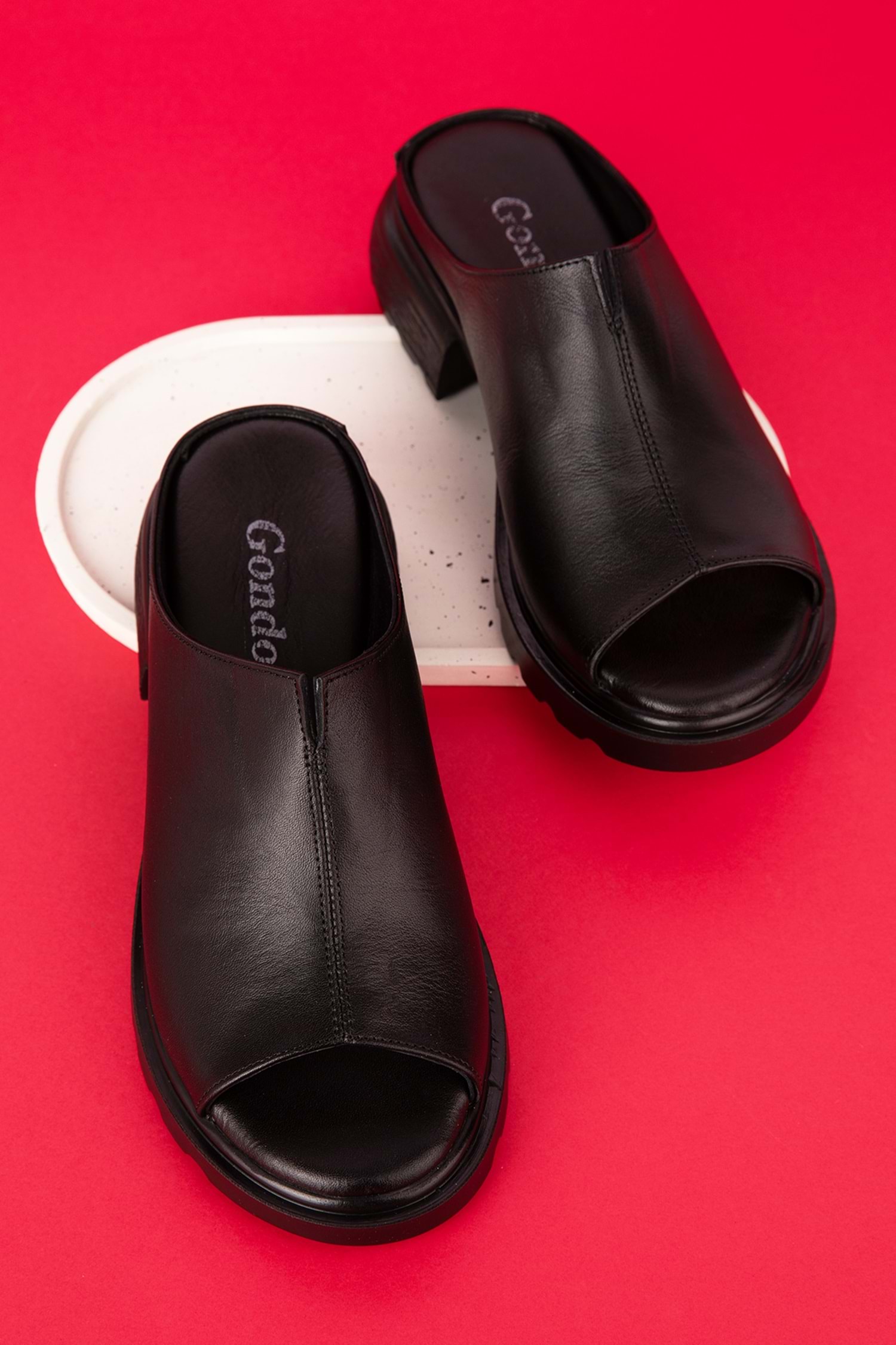 Gondol Kadın Hakiki Deri Şık Orta Topuklu Terlik elnr.1064 - Siyah - 38
